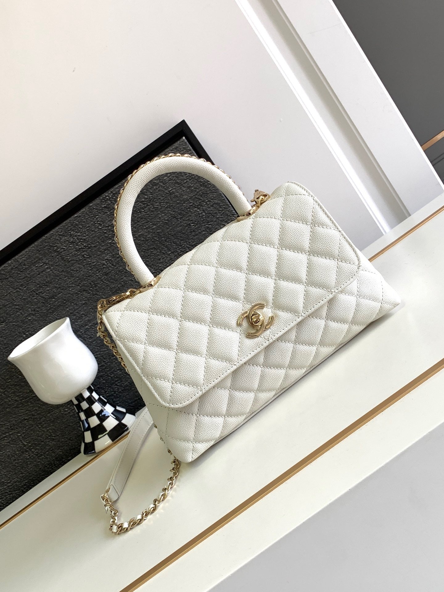 CC MEDIUM 27 TOTE BAG IN WHITE CALFSKIN