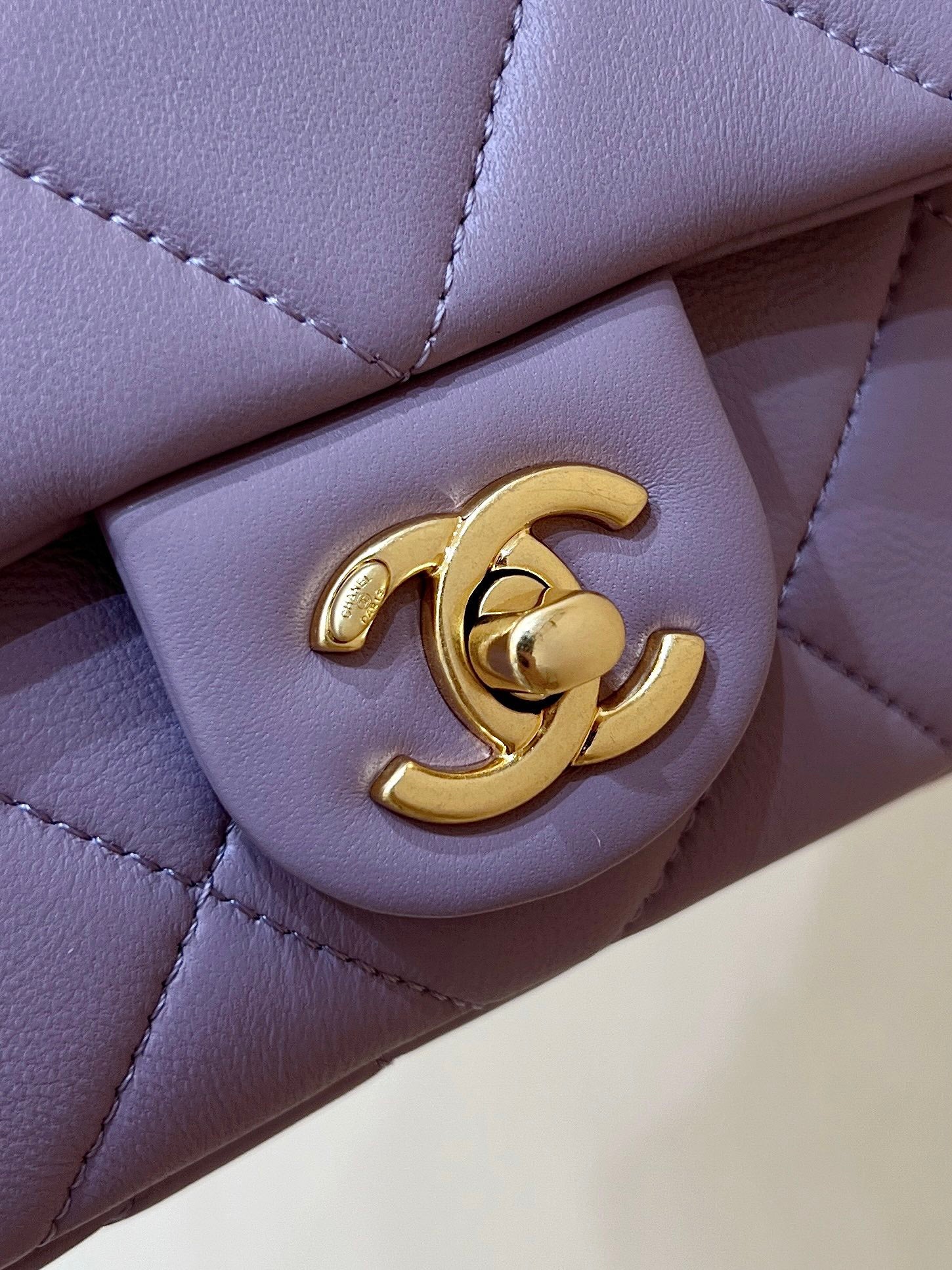 MINI FLAP BAG 16 IN BABY PURPLE LAMBSKIN GOLD DOUBLE C THICK CHAIN