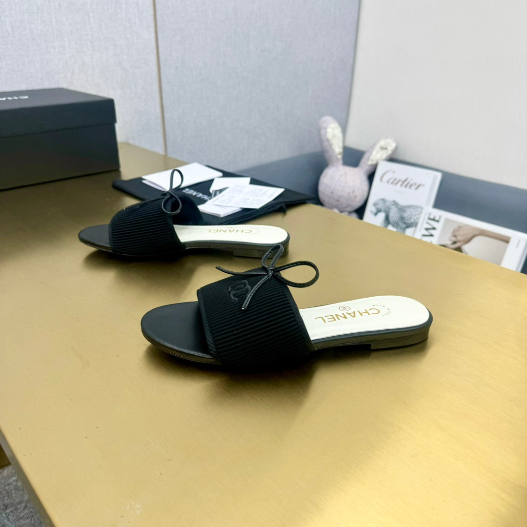 BOW SLIPPERS IN BLACK LAMBSKIN