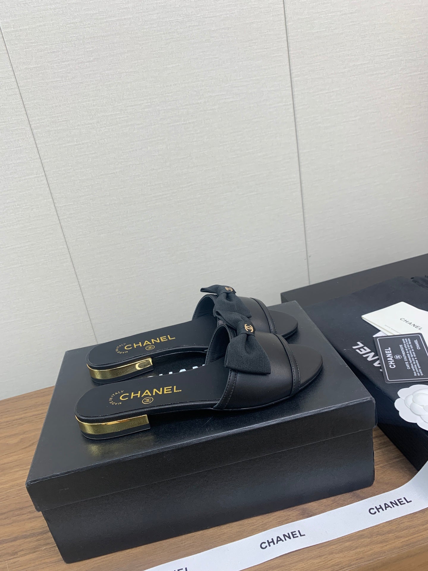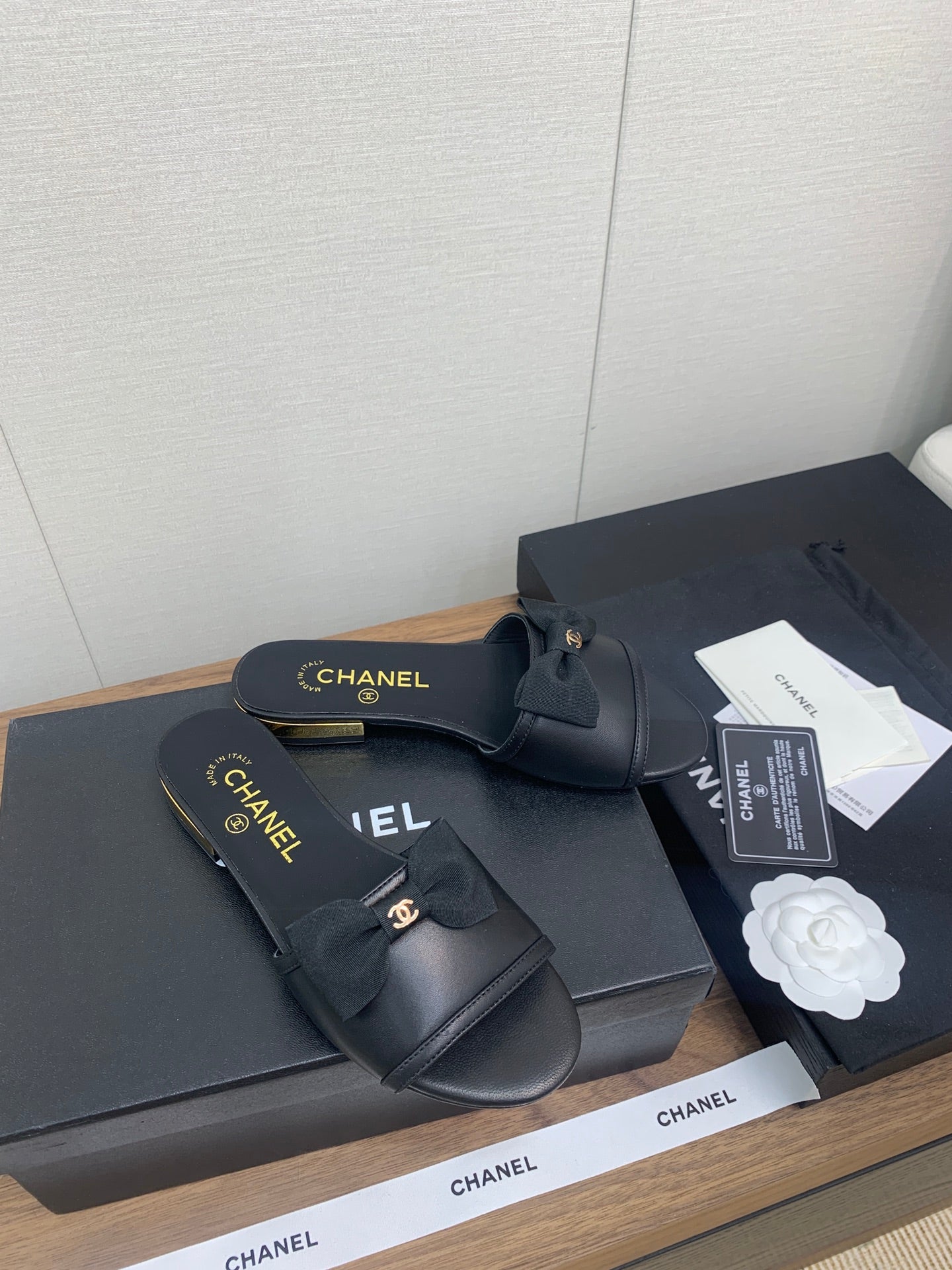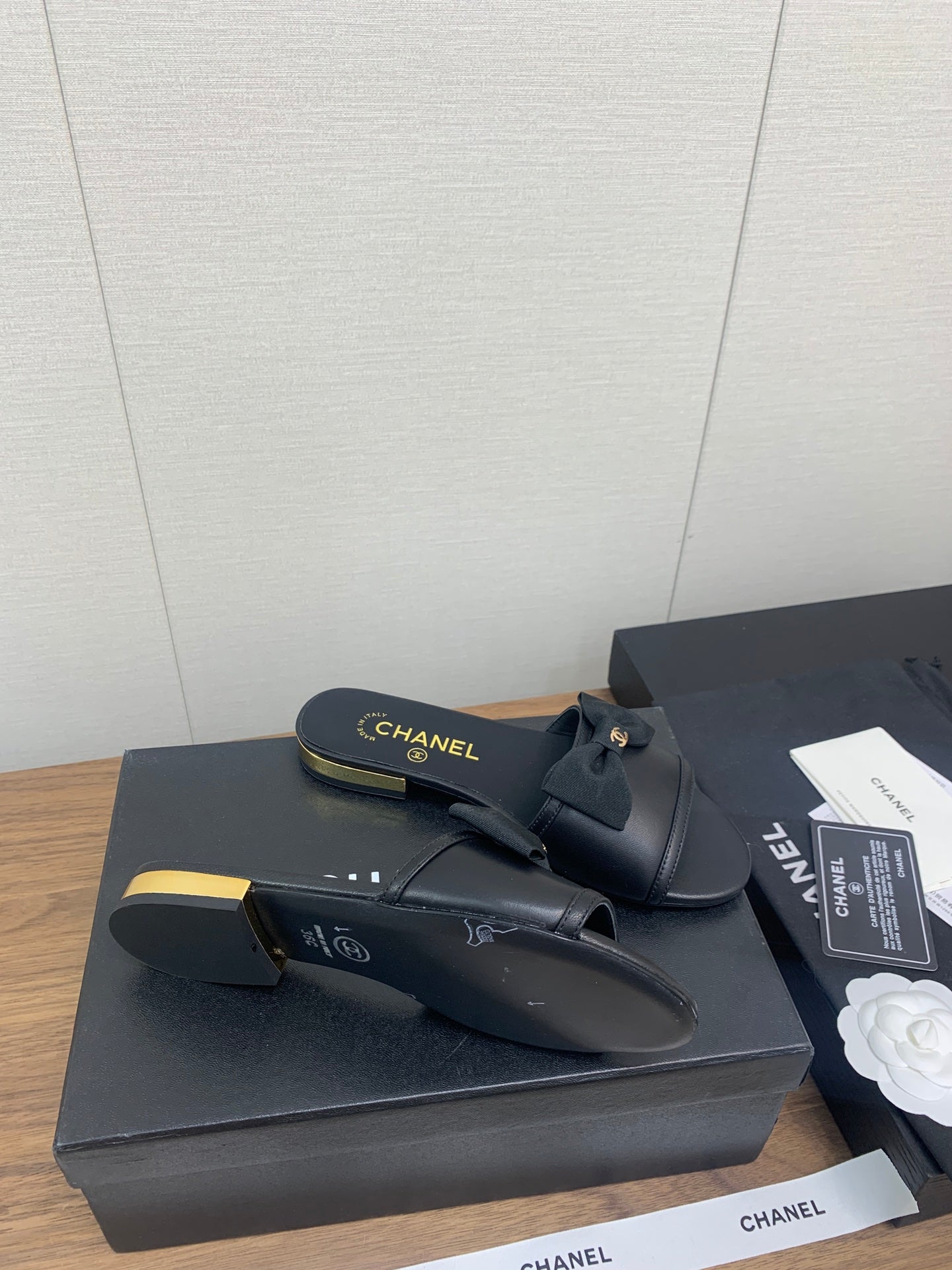 BOW SLIPPERS IN BLACK LAMBSKIN