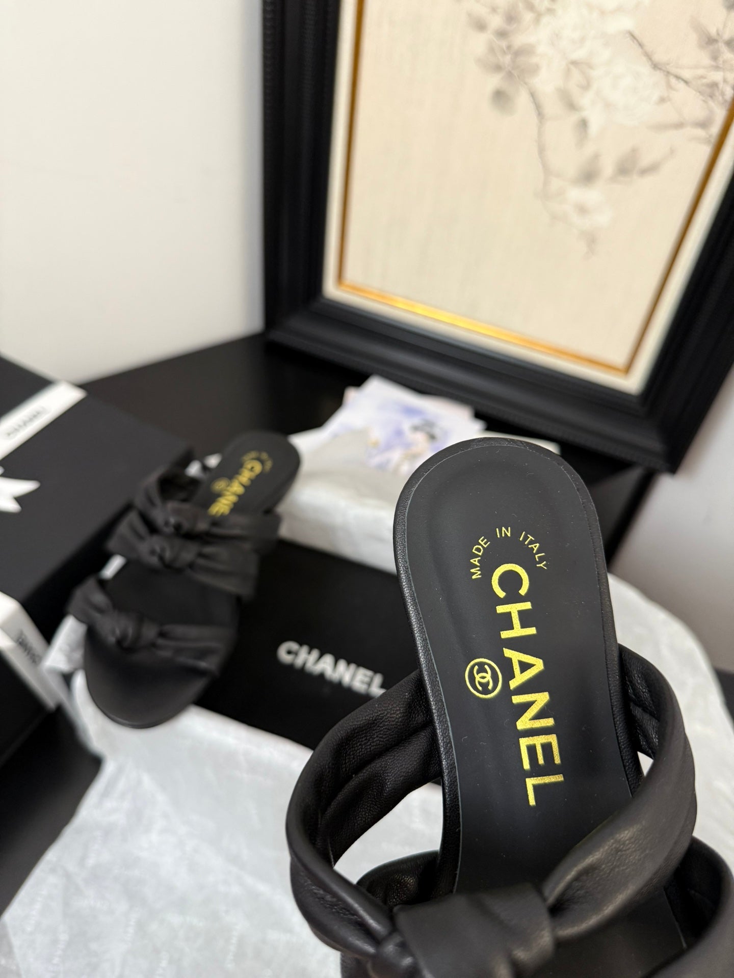 CC 25C Three Strap Mule Black Lambskin 233557