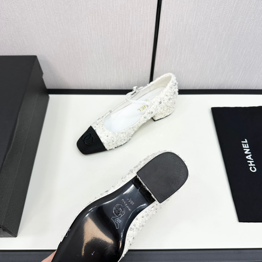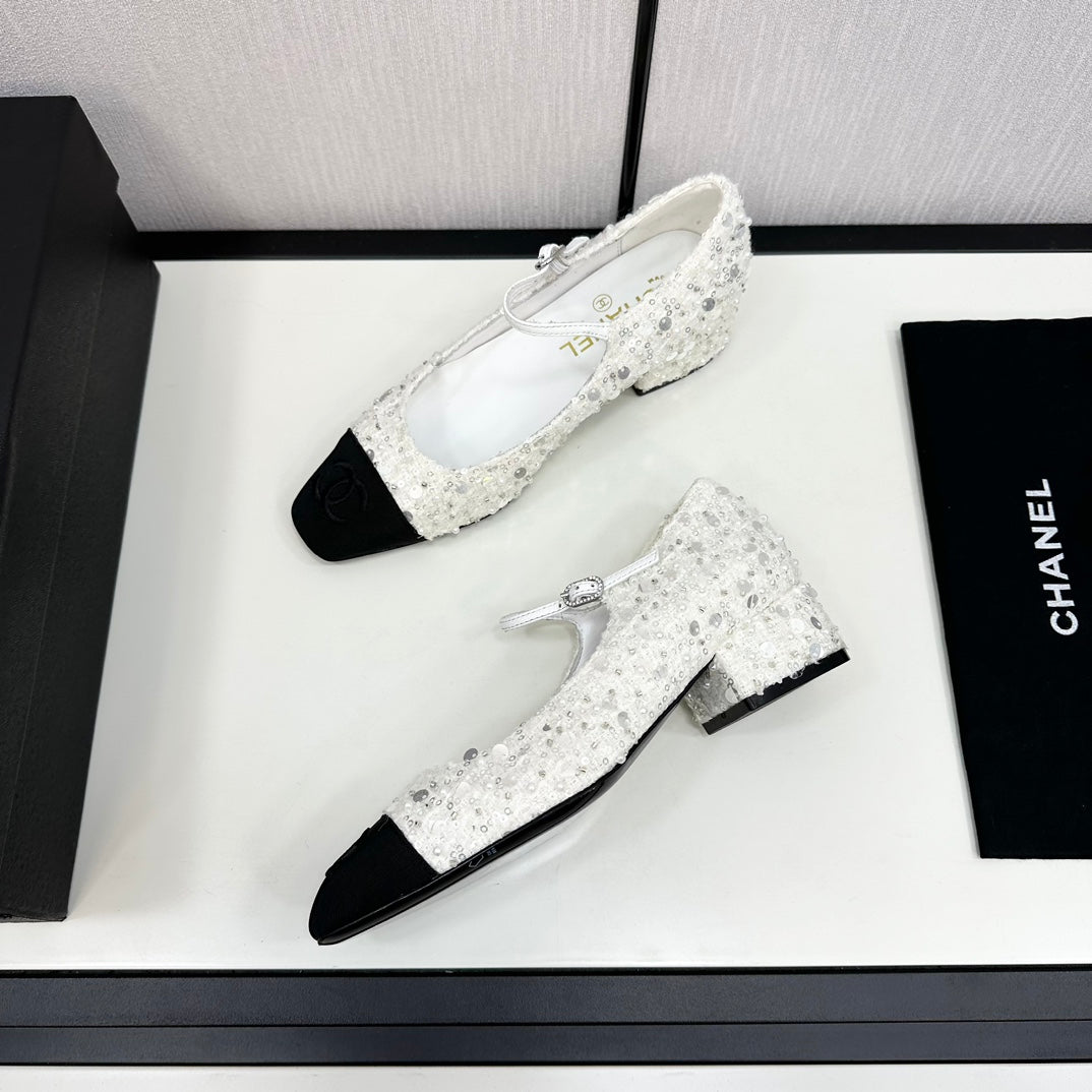 CC MARY JANE IN BLACK MIX WHITE SEQUINS AND VELVET