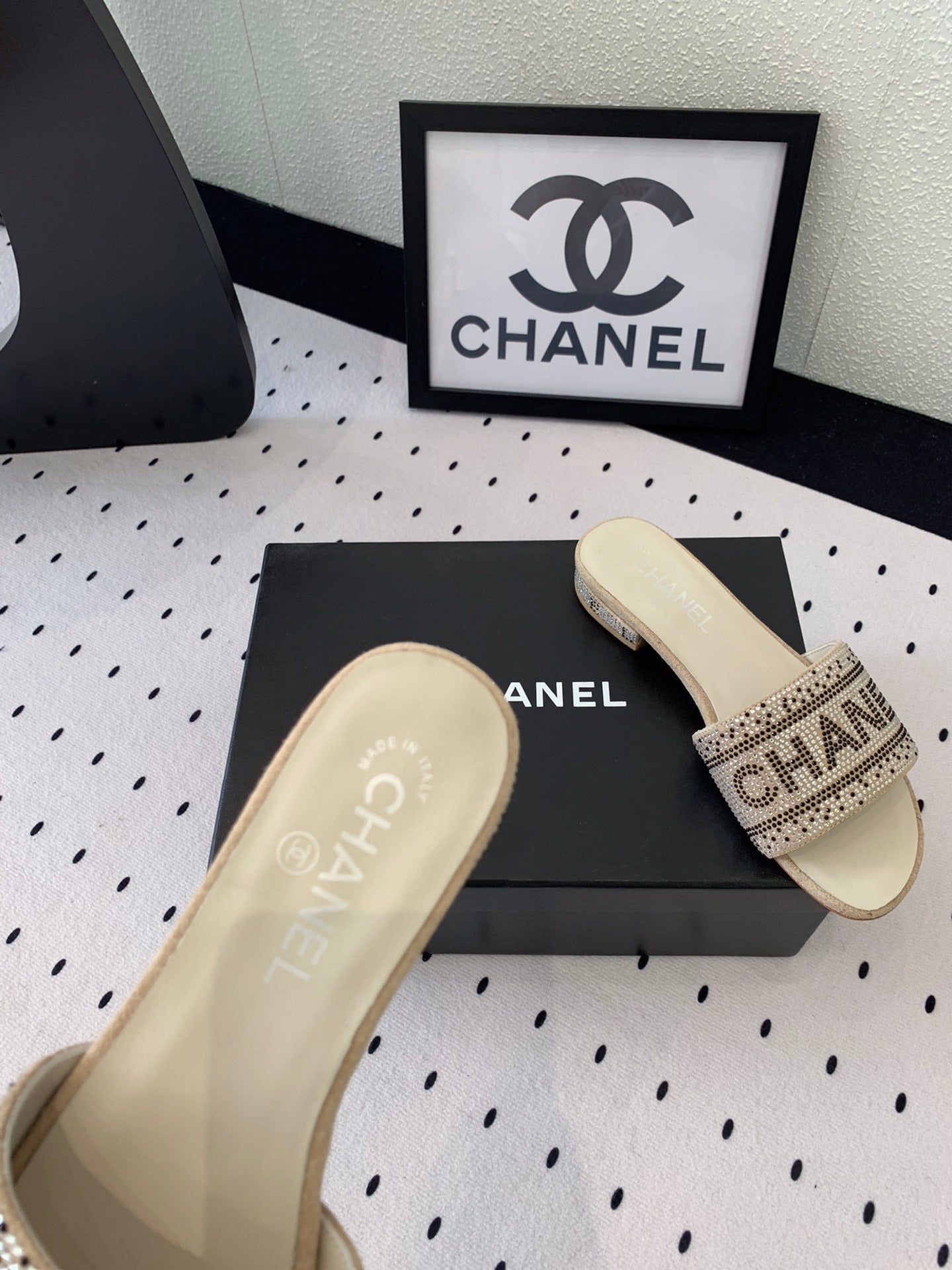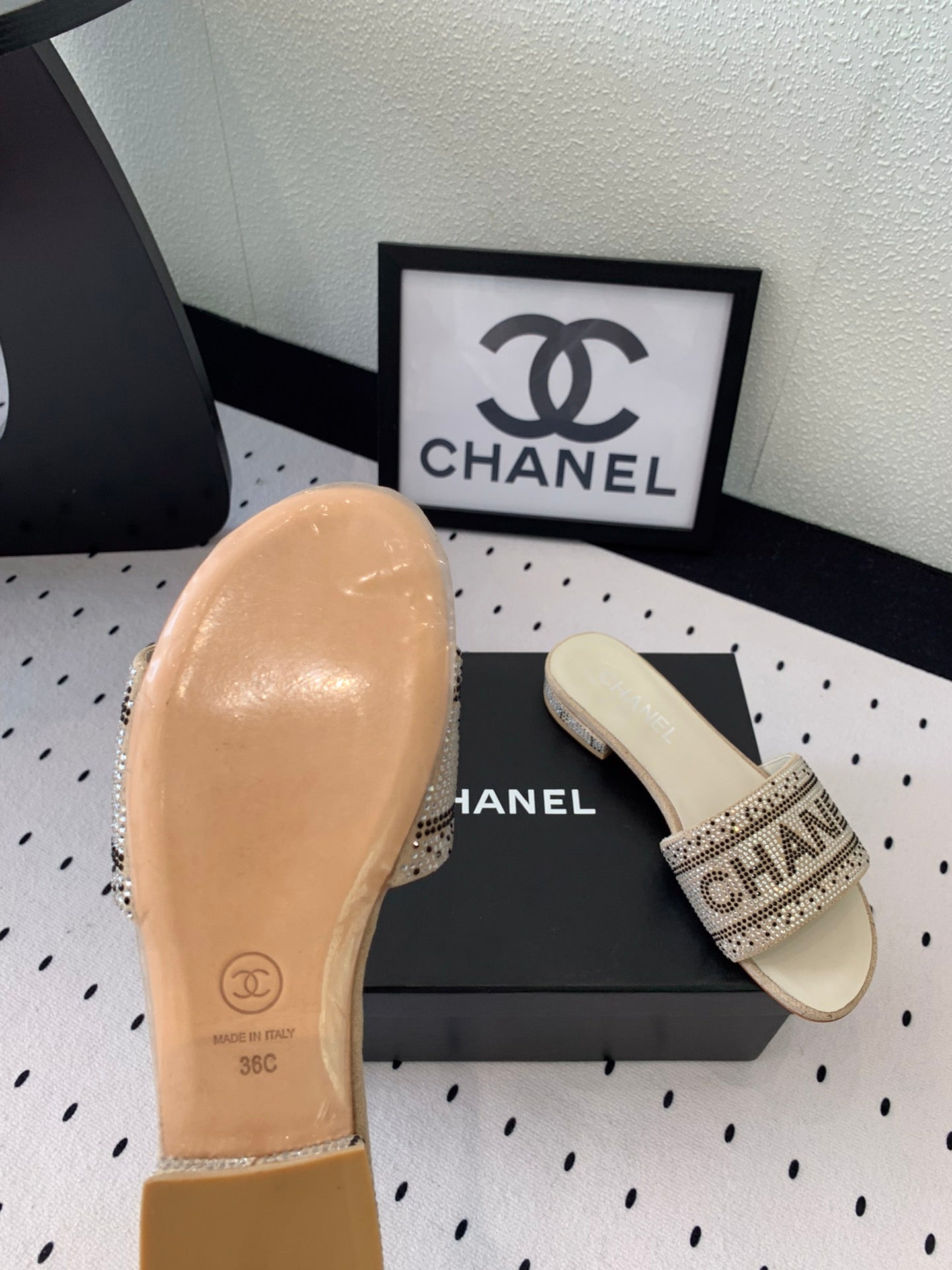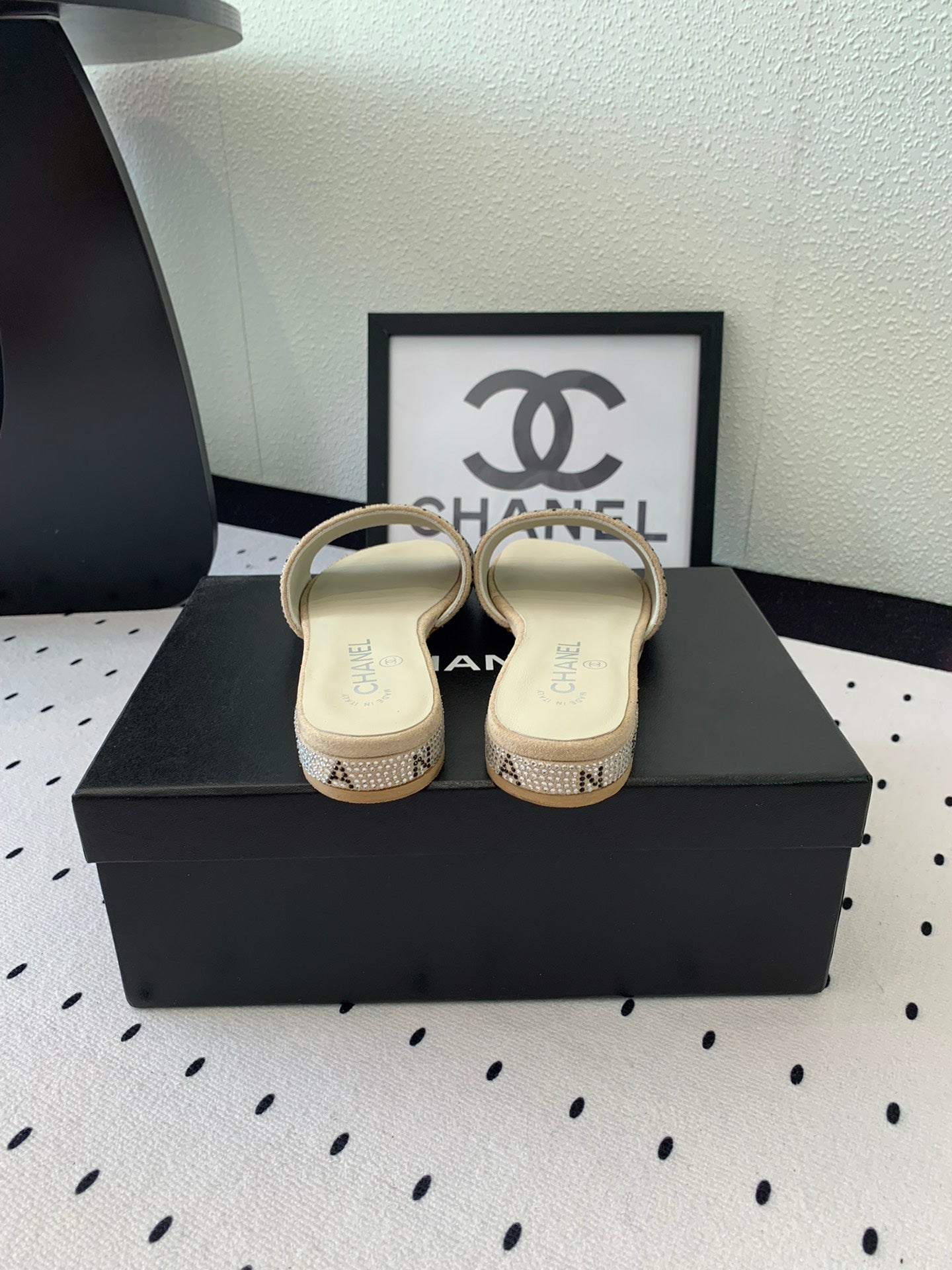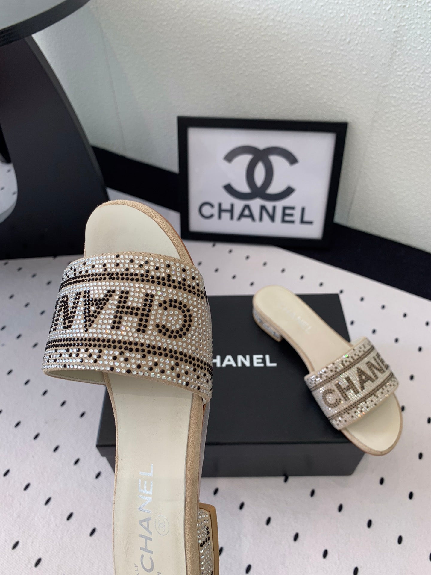 CC RHINESTONE LETTER SLIPPERS BEIGE LAMBSKIN