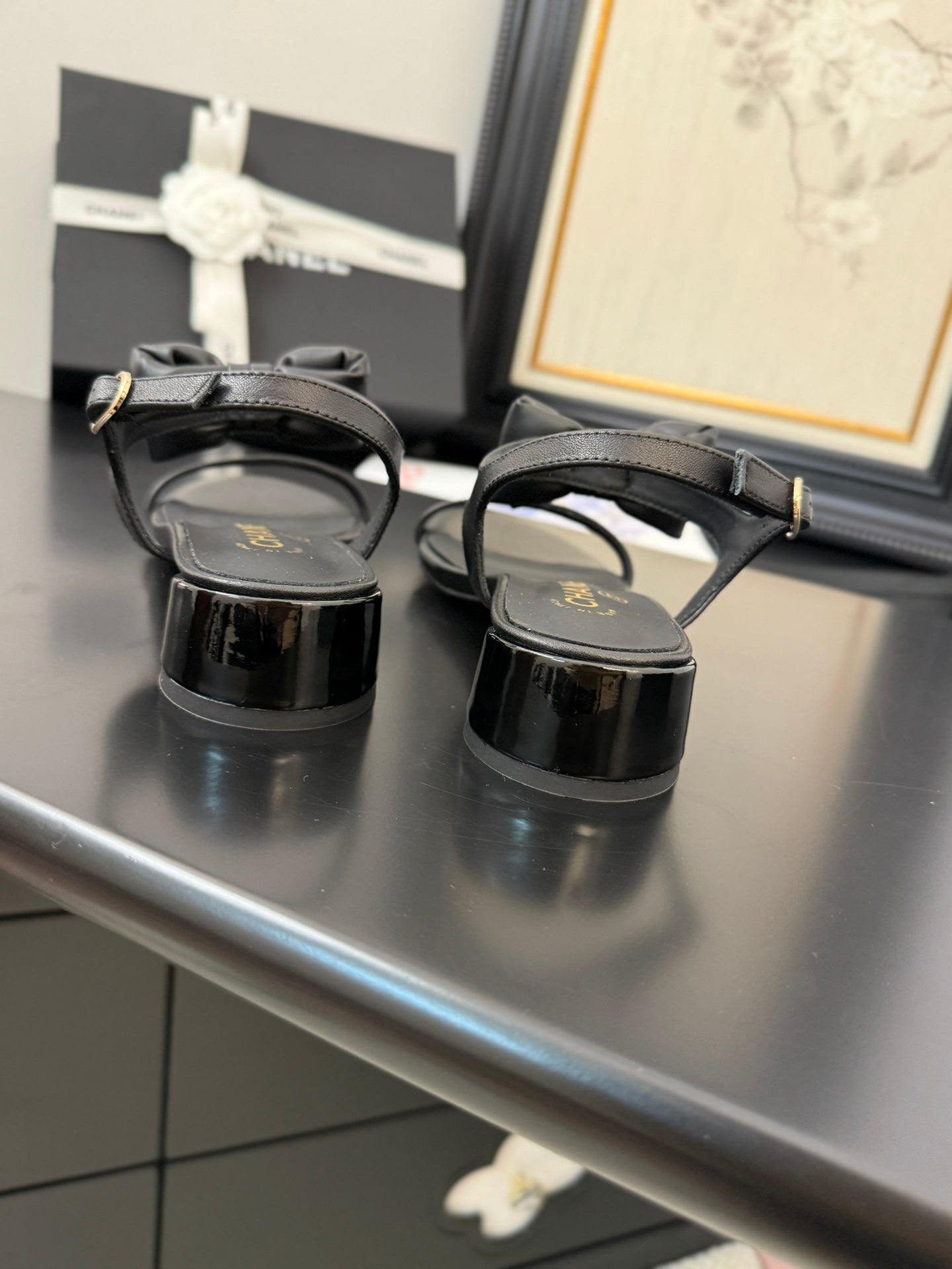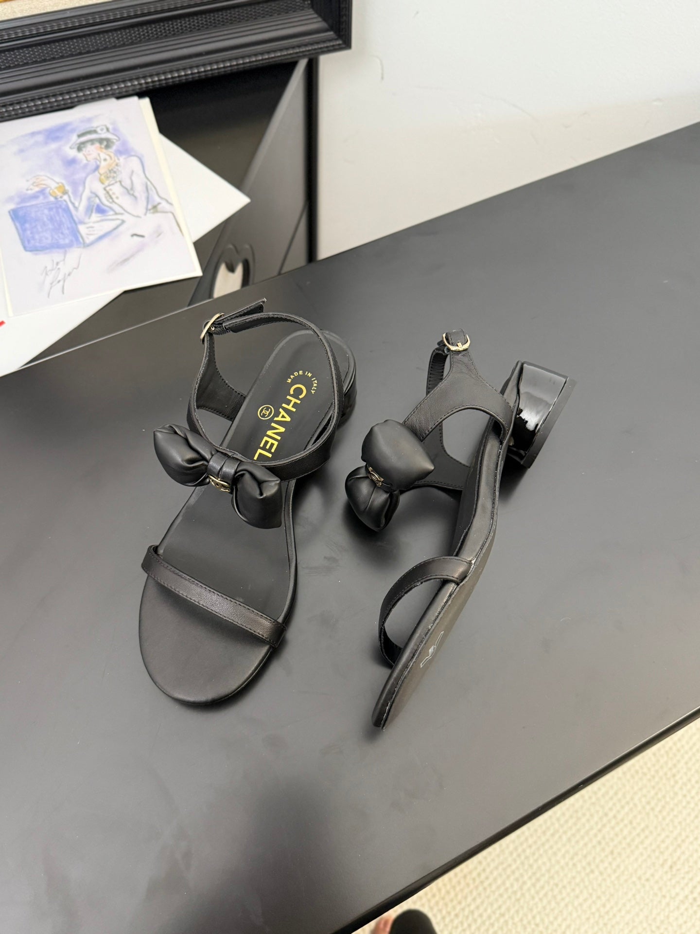 FLAT SANDALS IN BLACK CALFSKIN WITH BOW