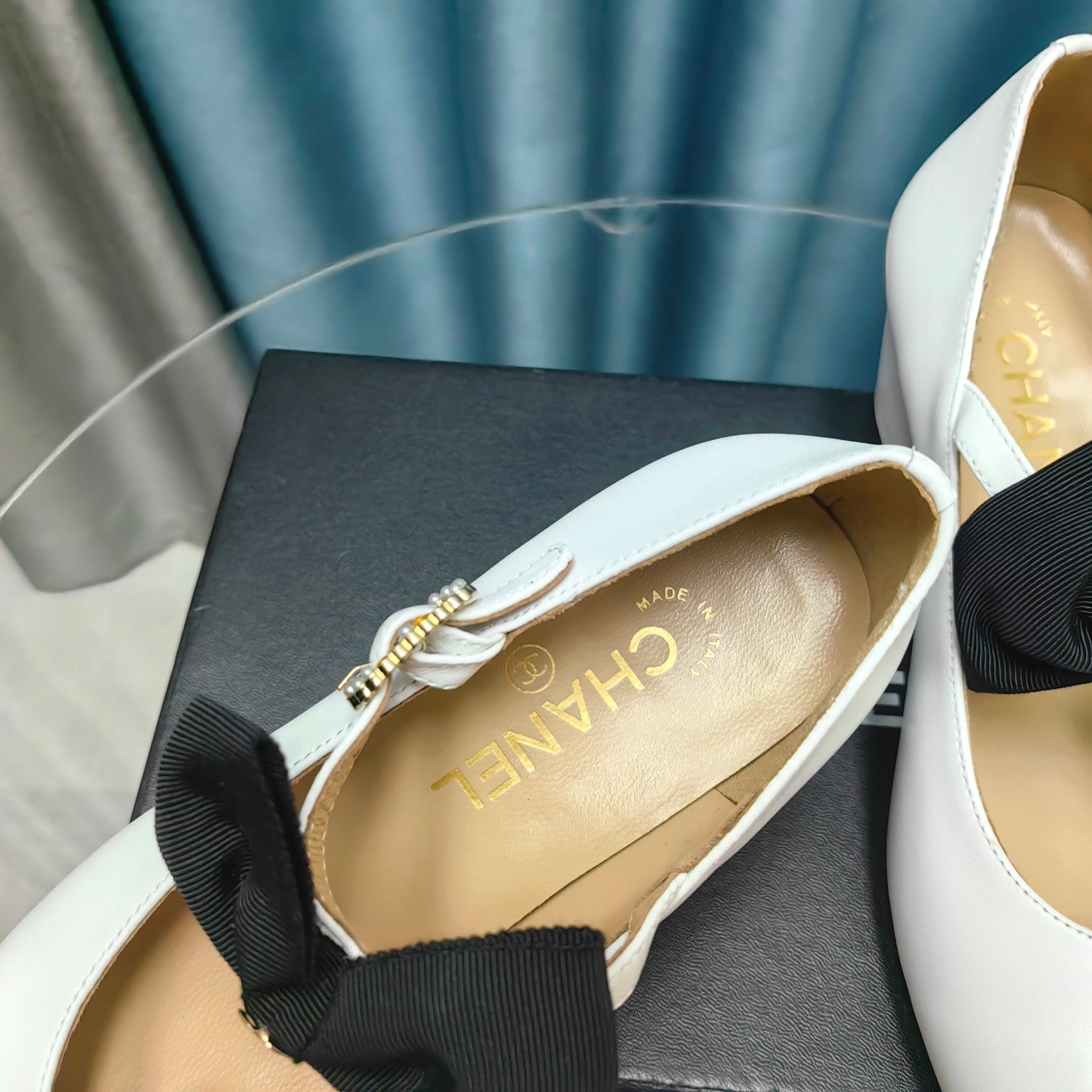 HIGH MARY JANE SHOES WHITE SHEEPSKIN WITH BLACK BOW