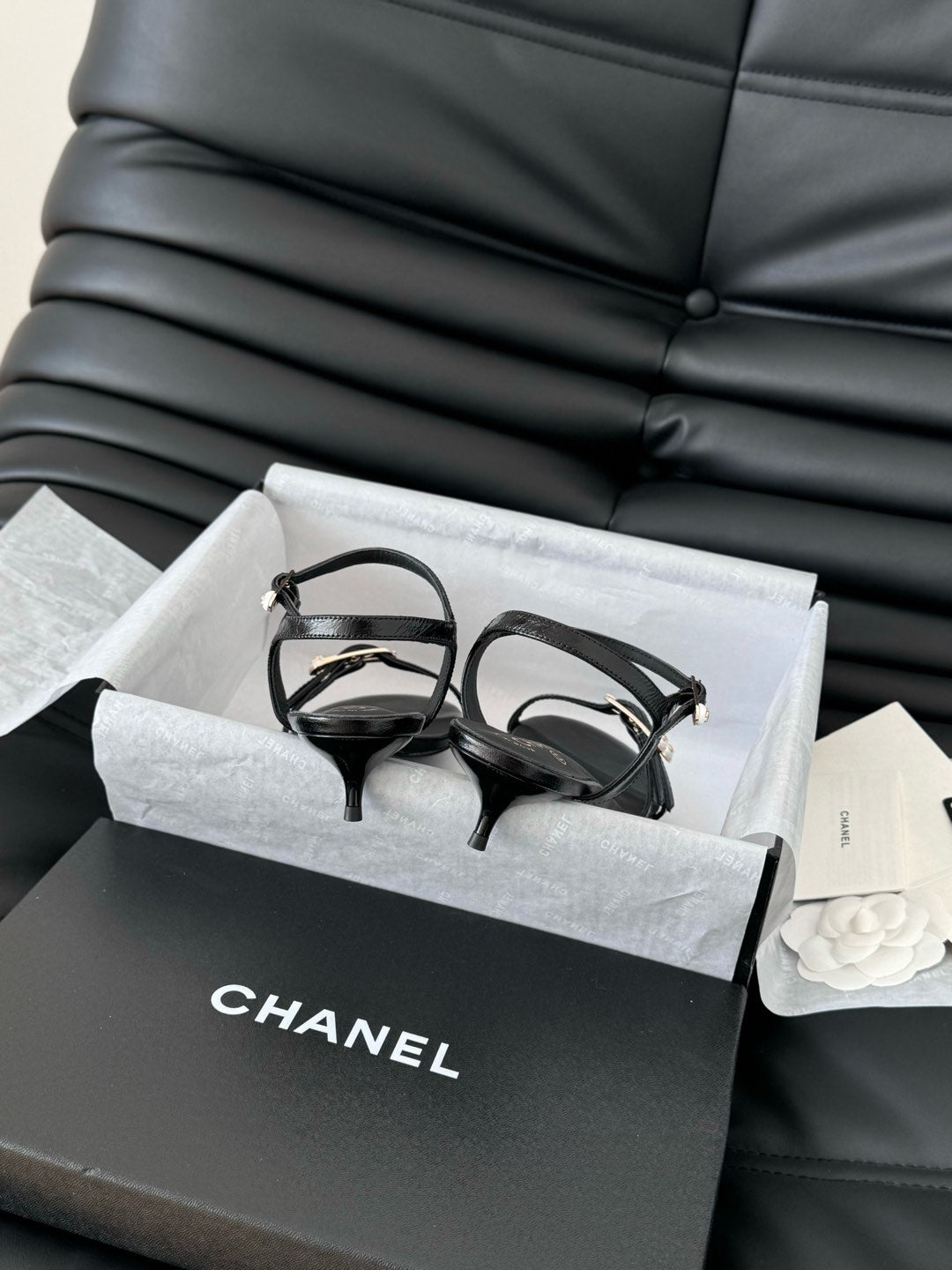 MID-HEEL 35 MM SANDAL IN BLACK SHEEPSKIN
