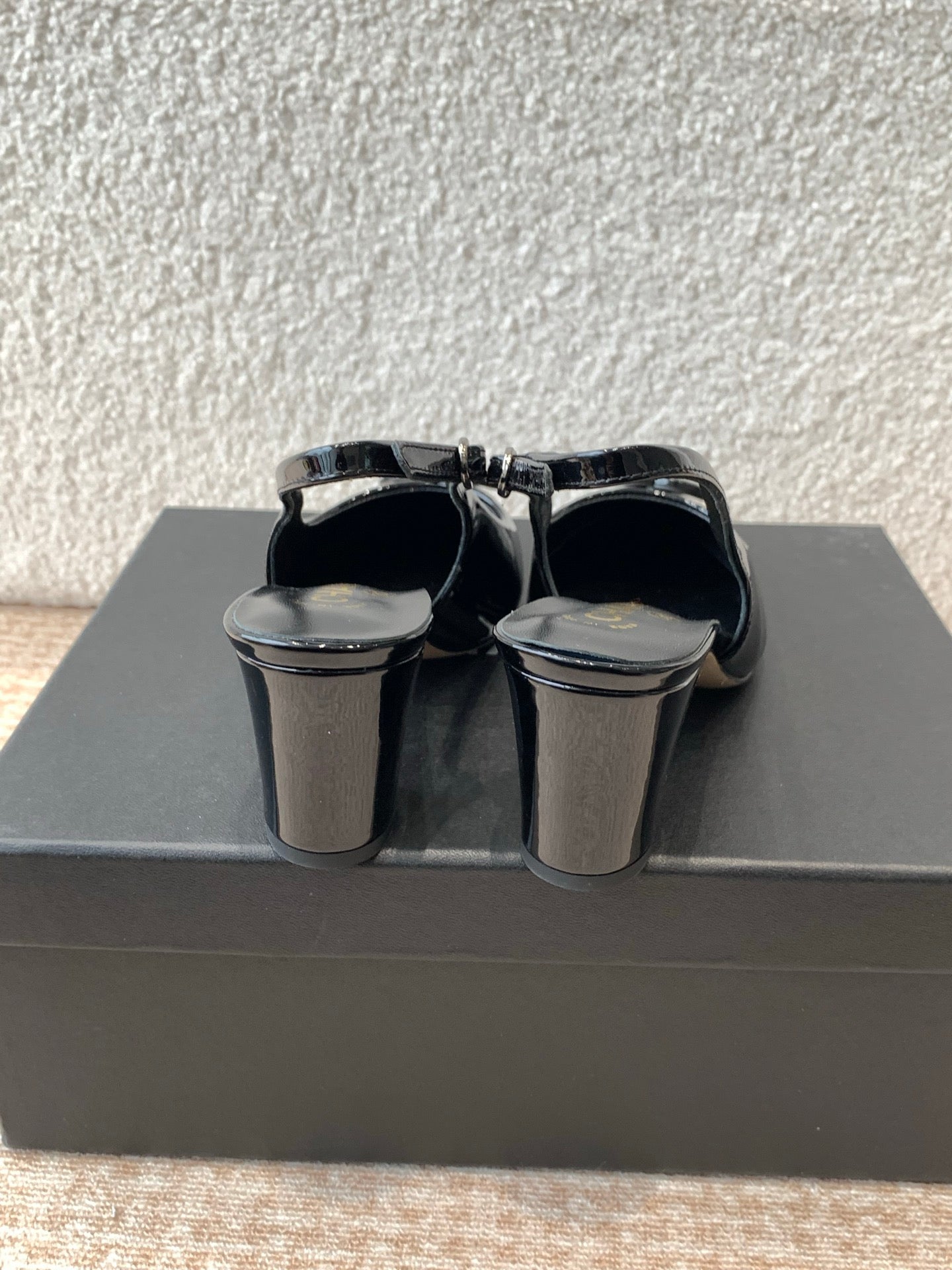 MID-HEEL SLINGBACKS IN BLACK PATENT CALFSKIN