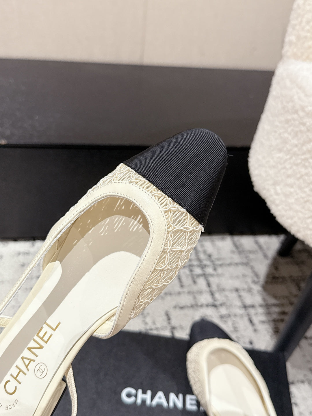 SLINGBACK 25S IN OFF WHITE AND BLACK FABRIC