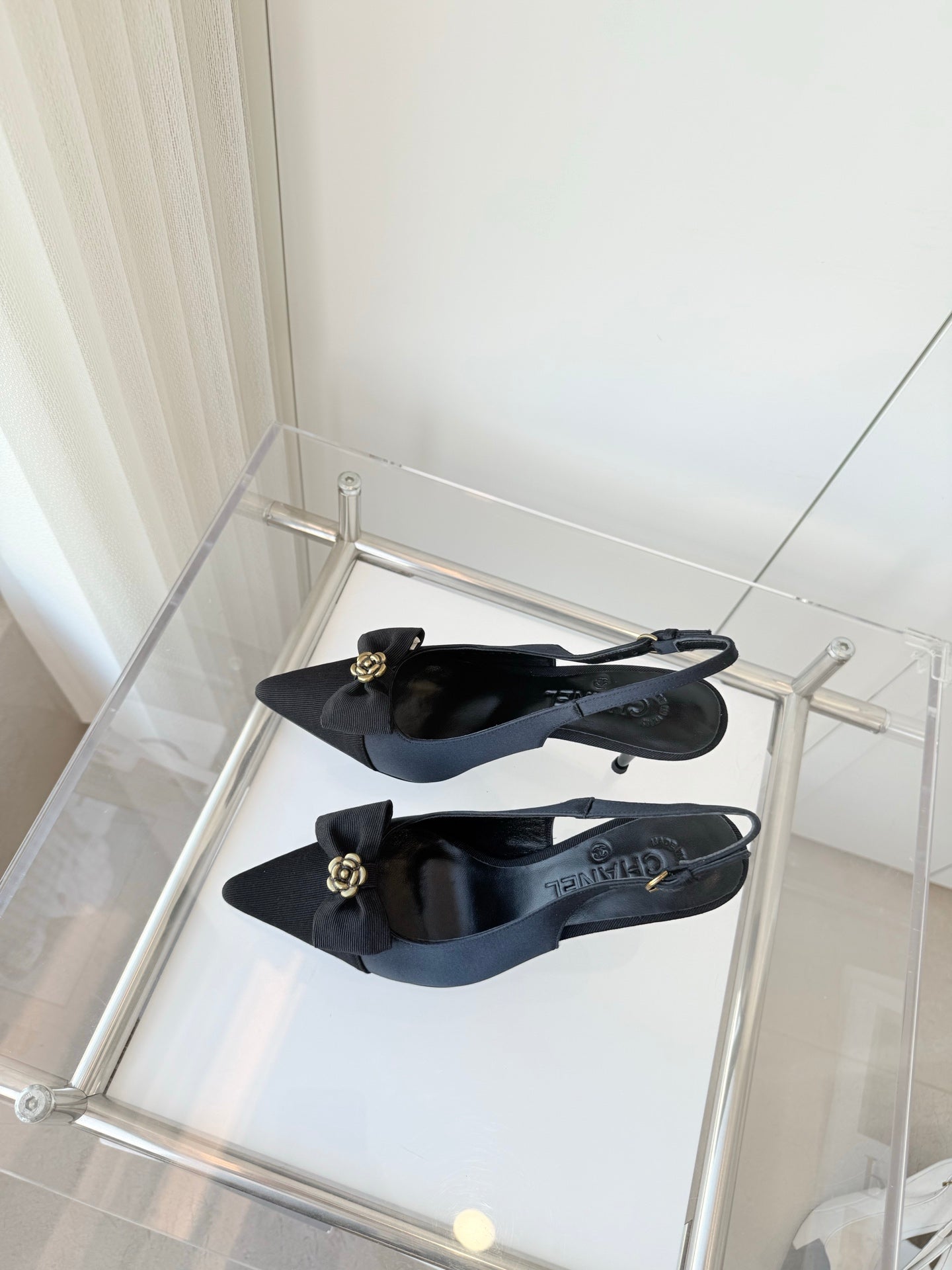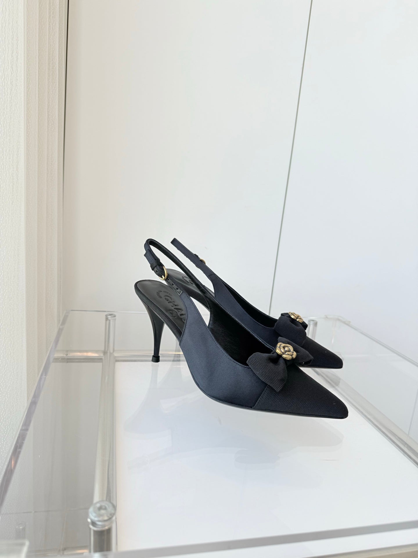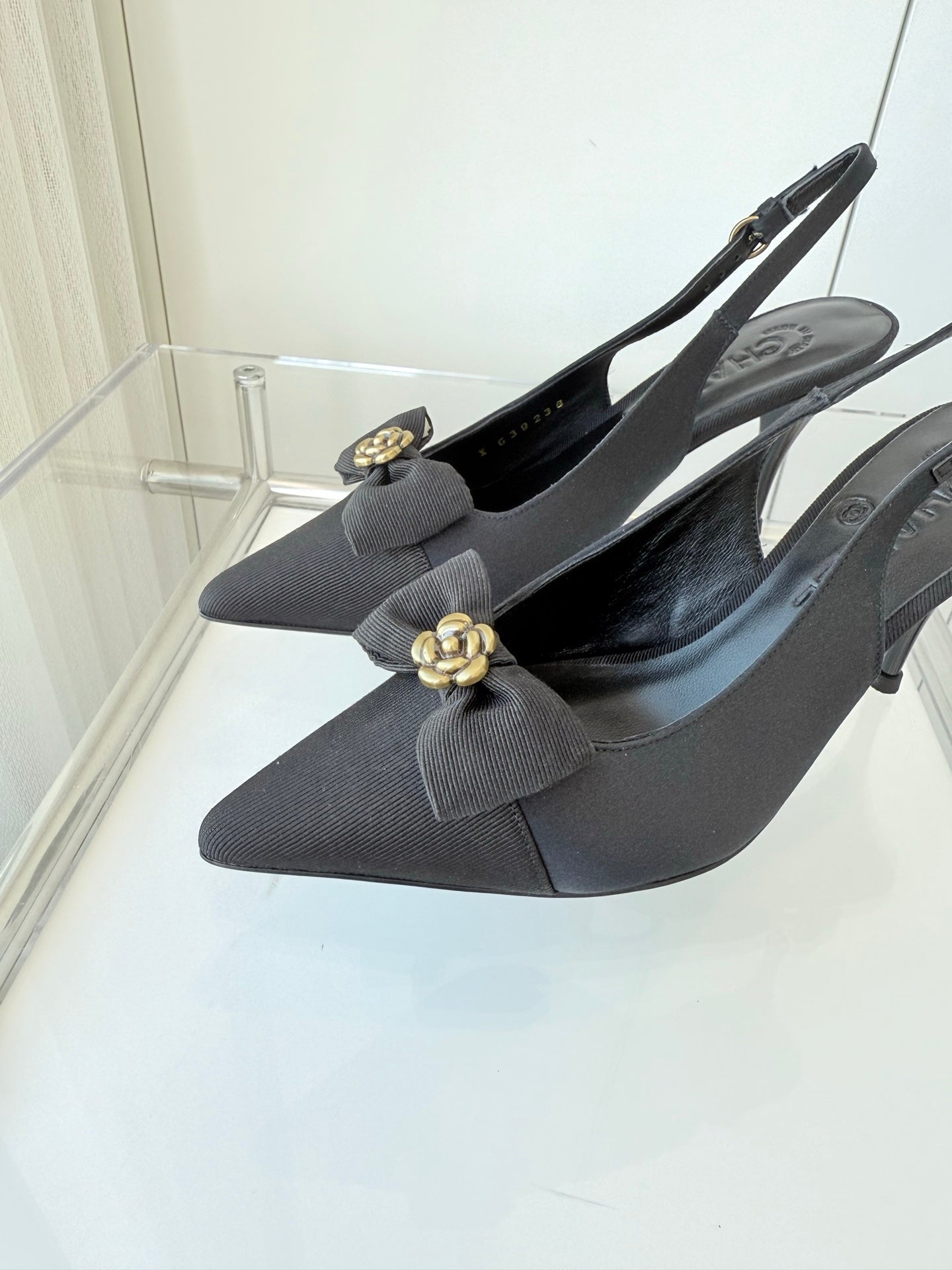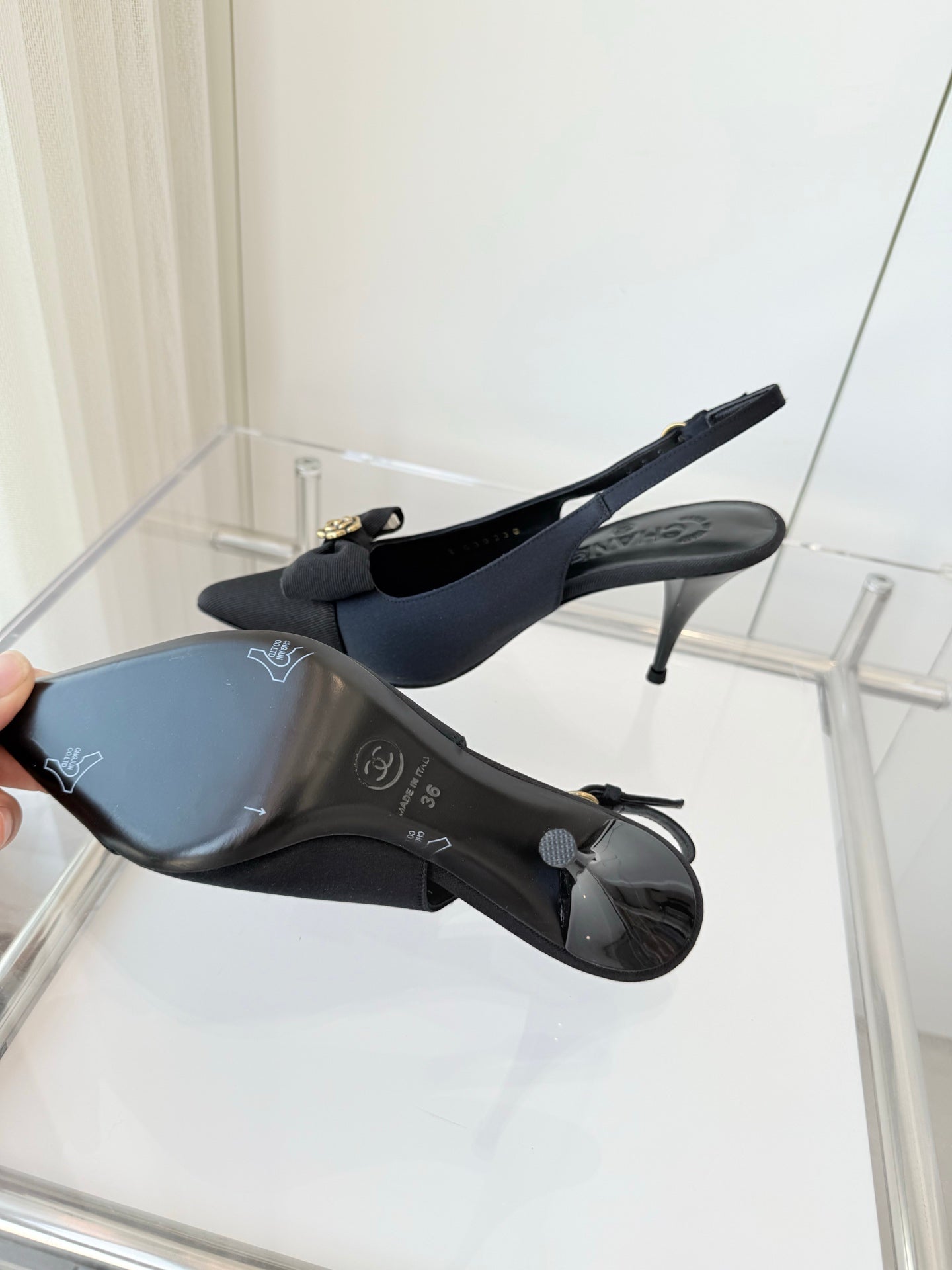 SLINGBACKS 80 MM IN BLACK CALFSKIN MIX CANVAS