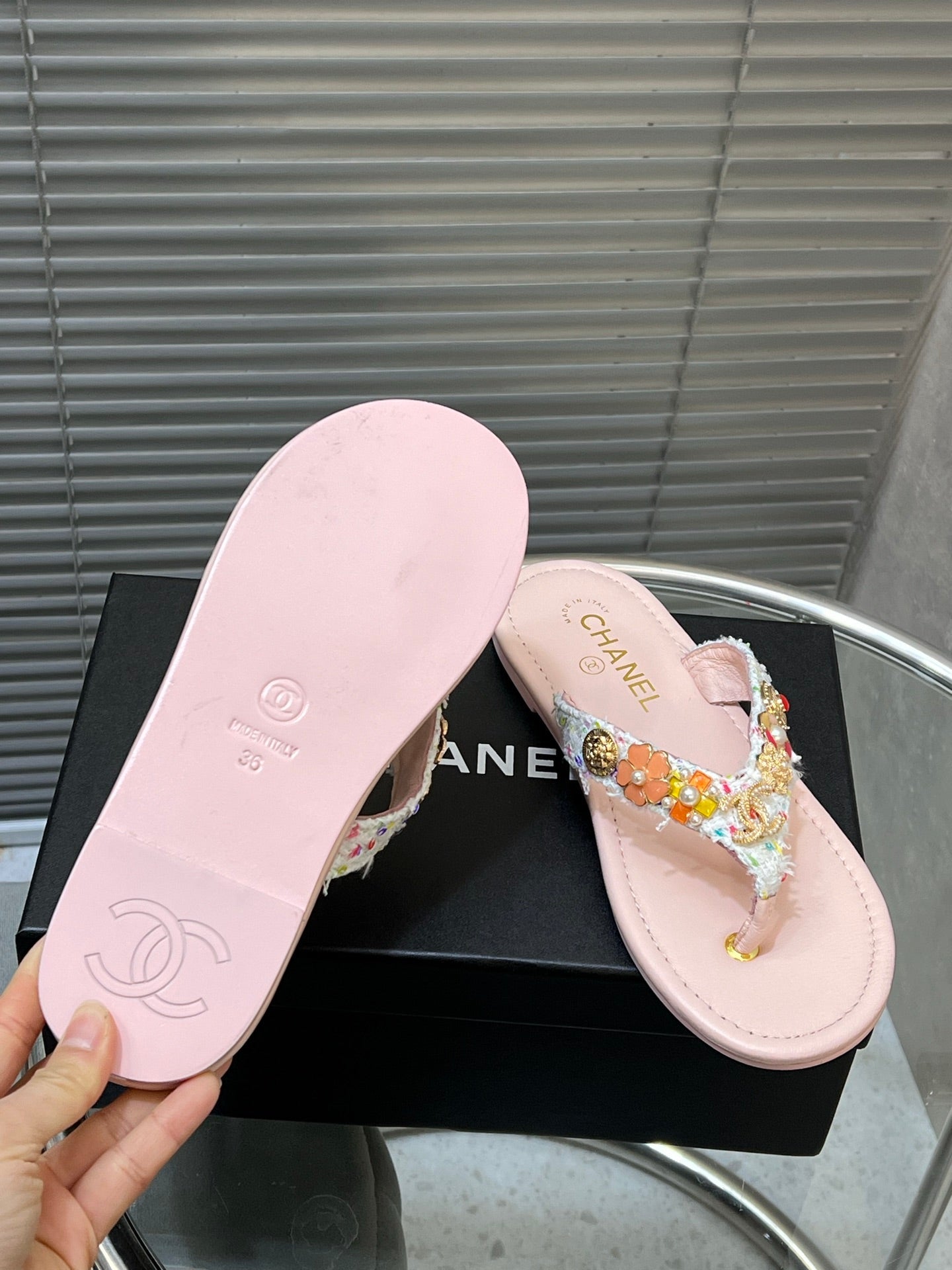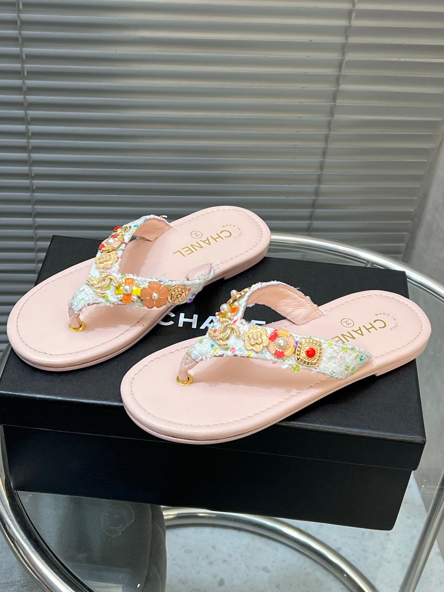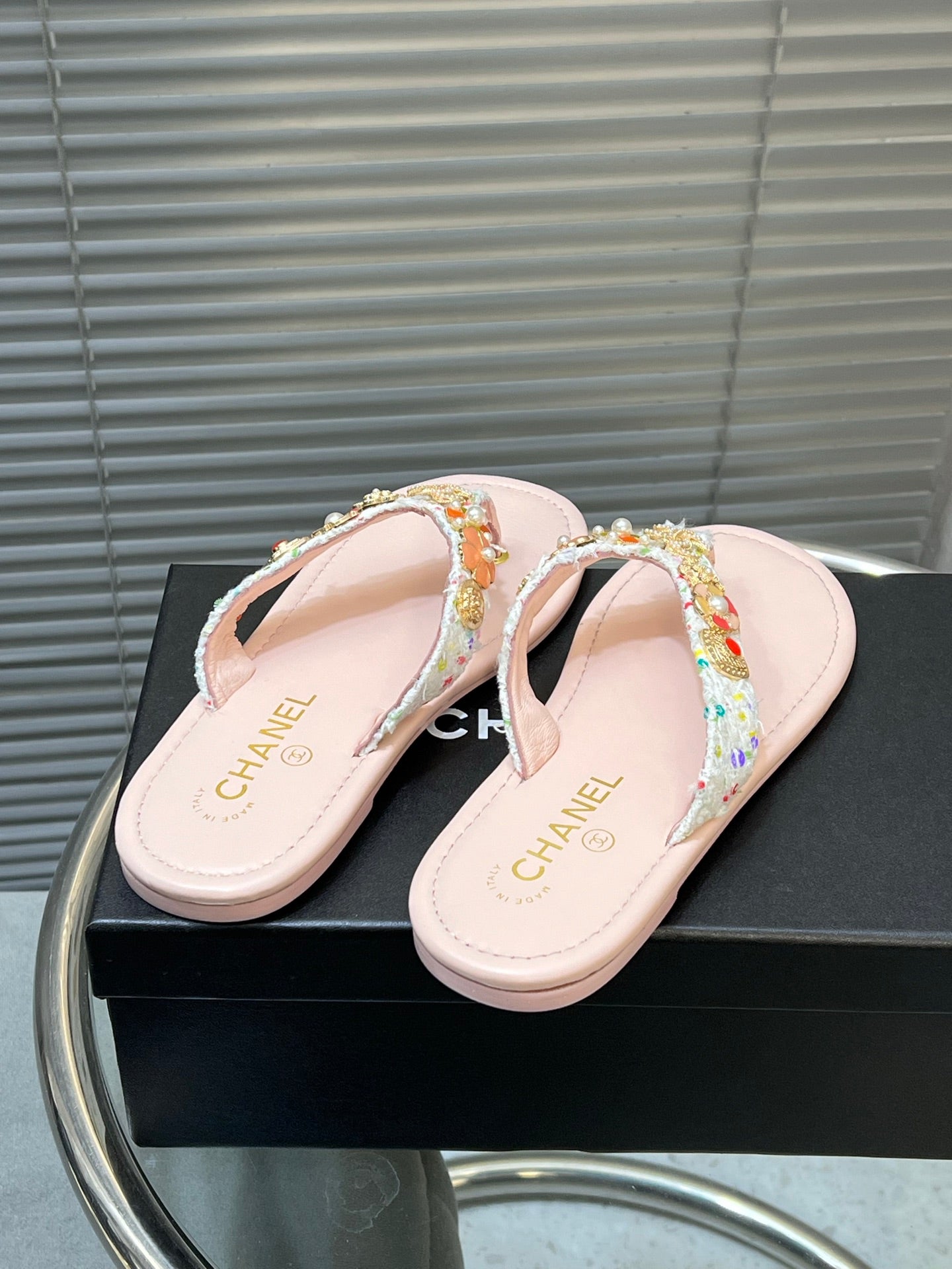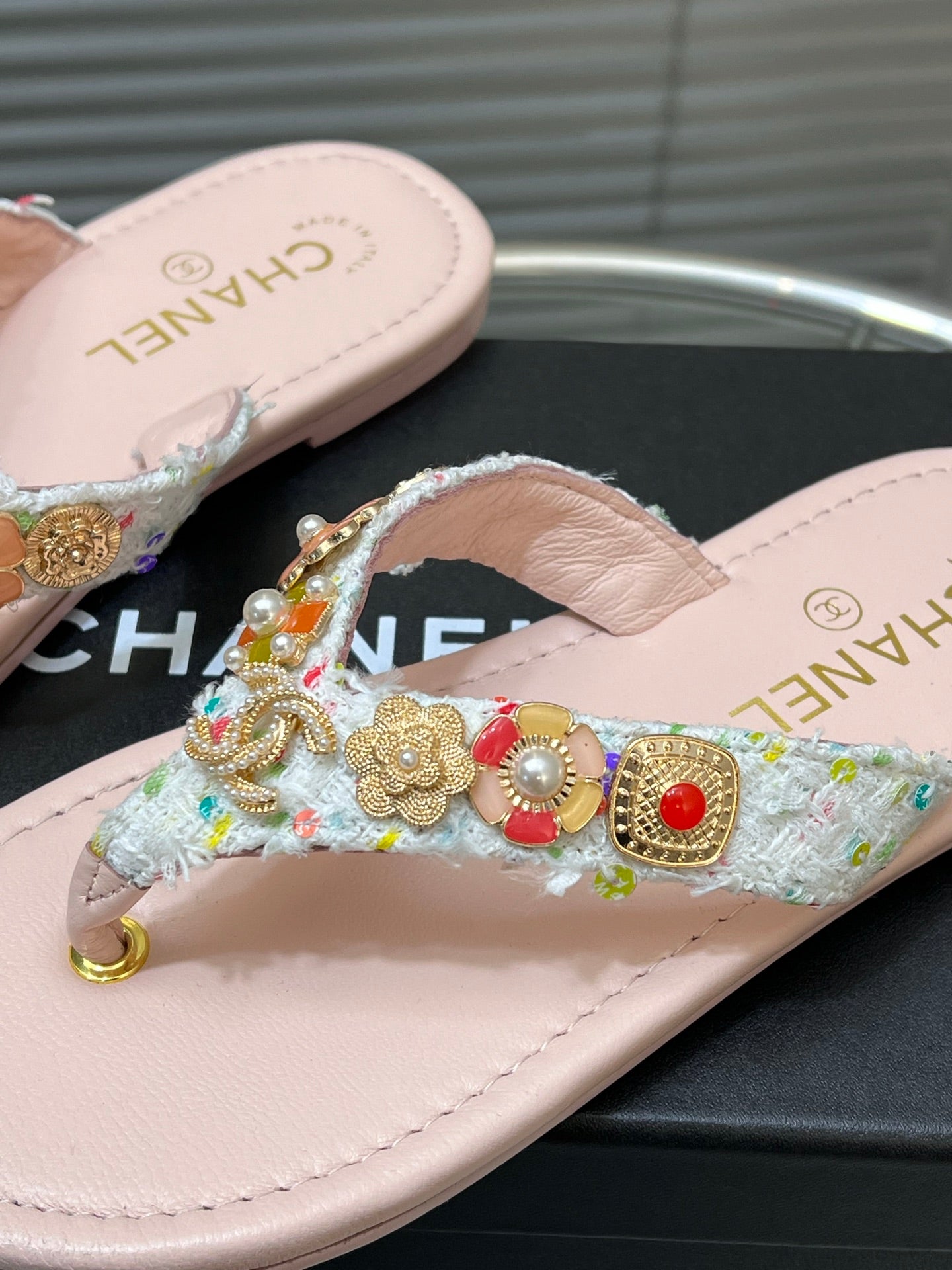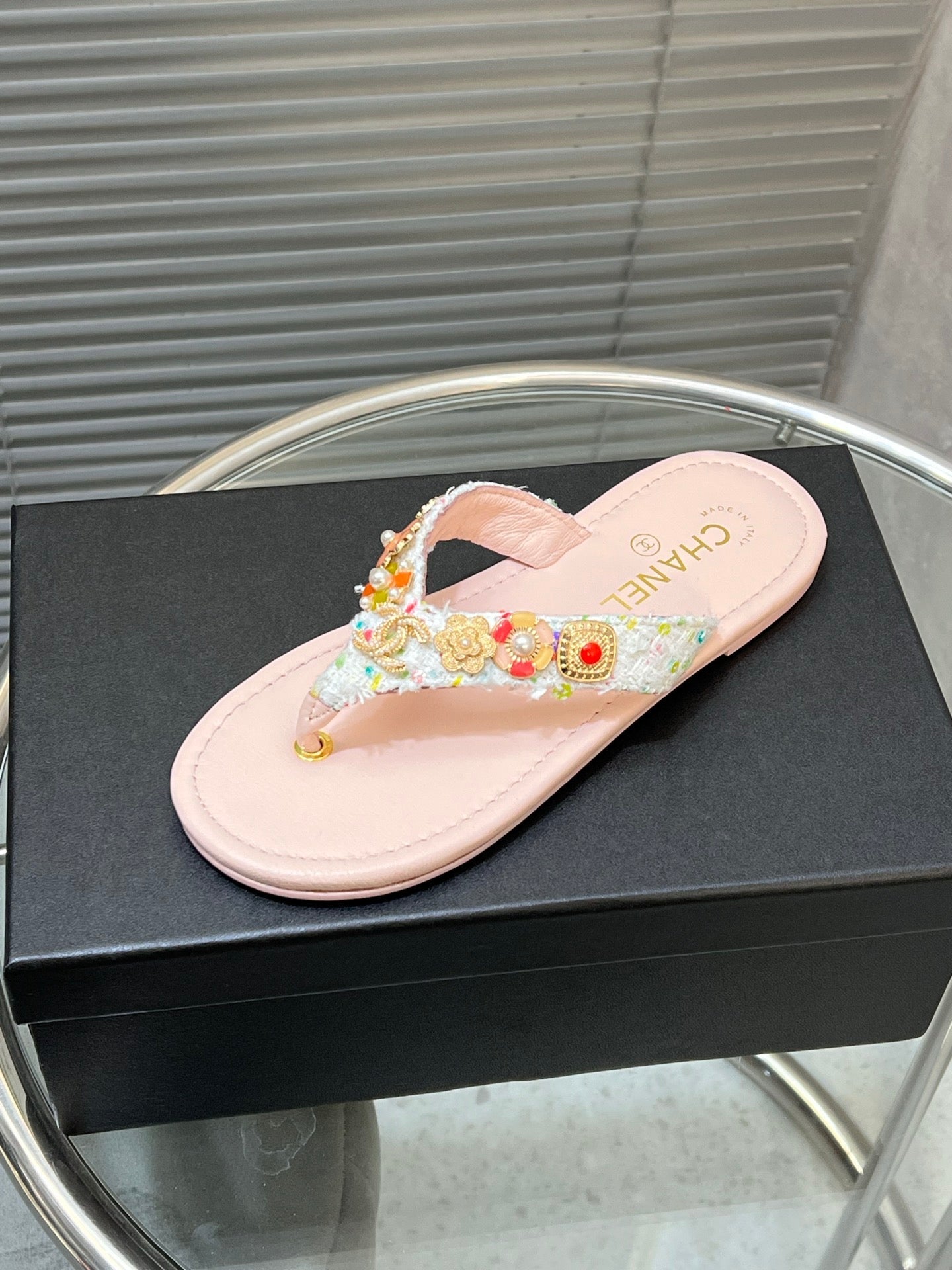 THONG SLIPPERS IN LIGHT PINK SOFT LEATHER WITH LOGO STICKER DETAIL