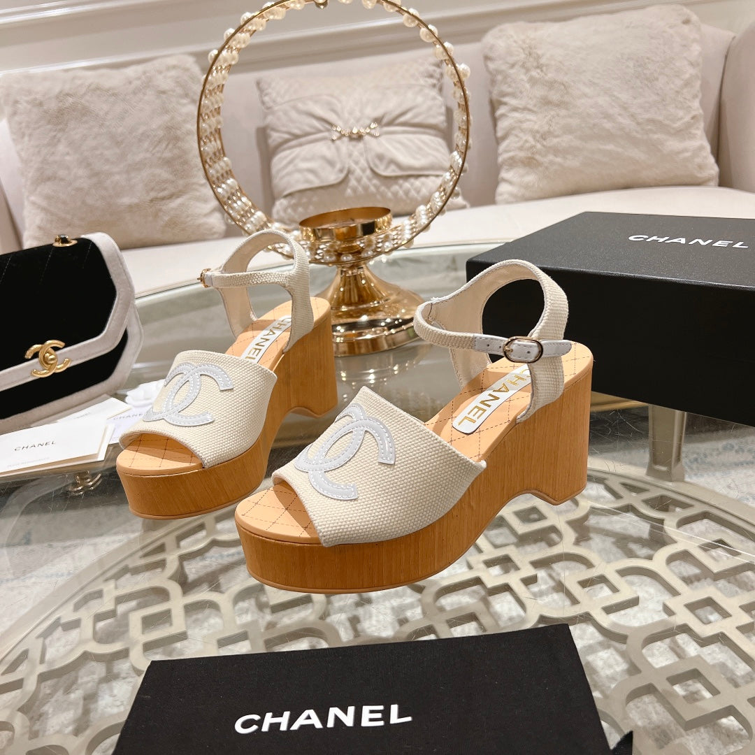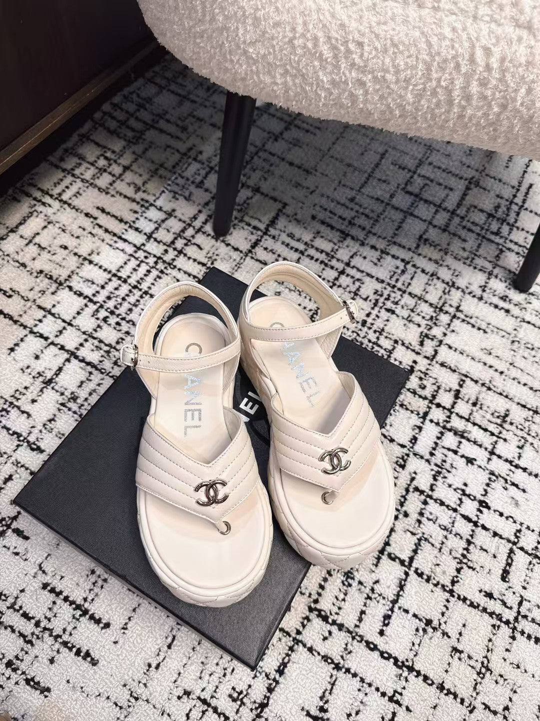 WEDGE PLATFORM IN BEIGE CREAM LAMBSKIN WITH WHITE LOGO