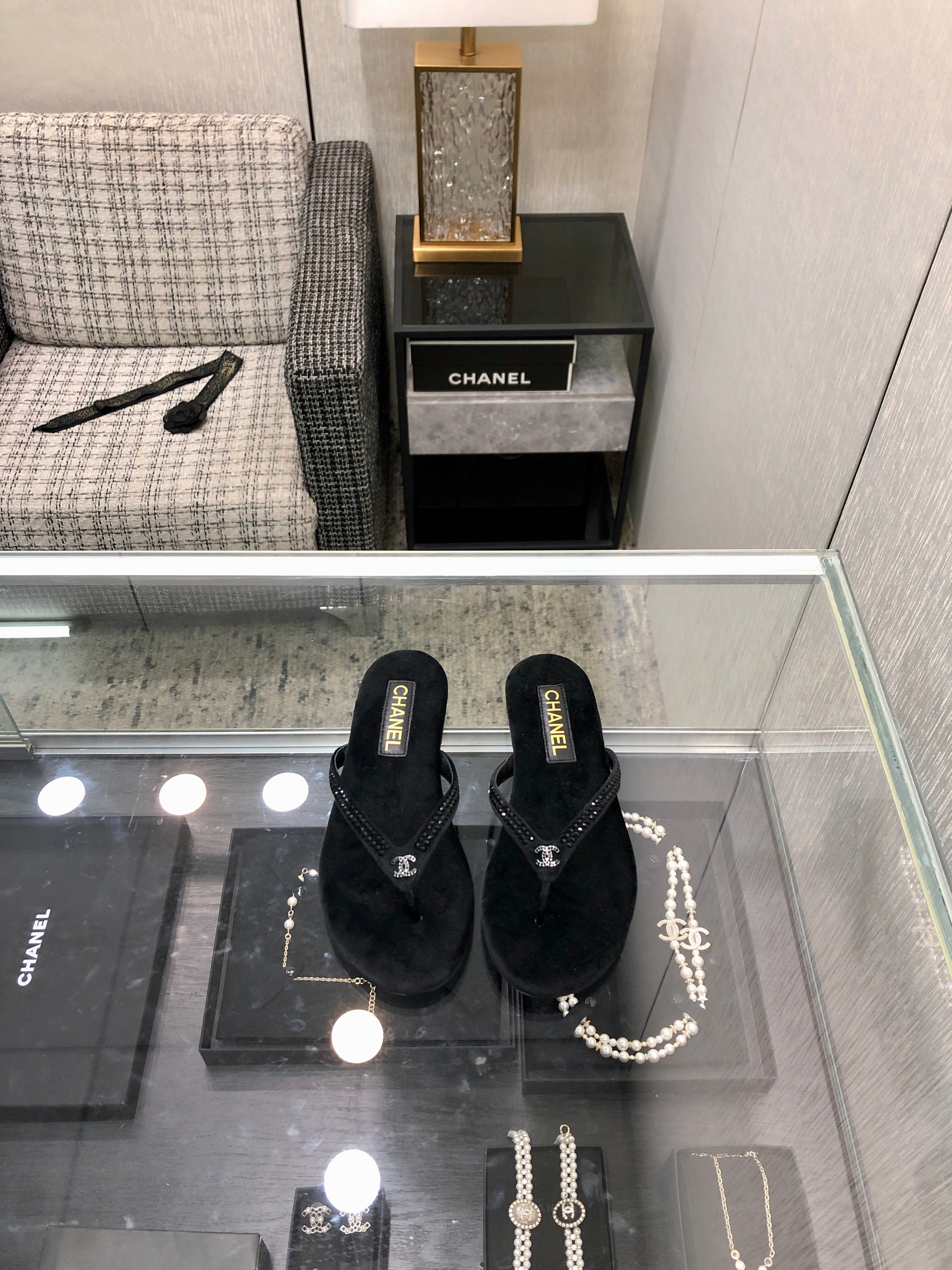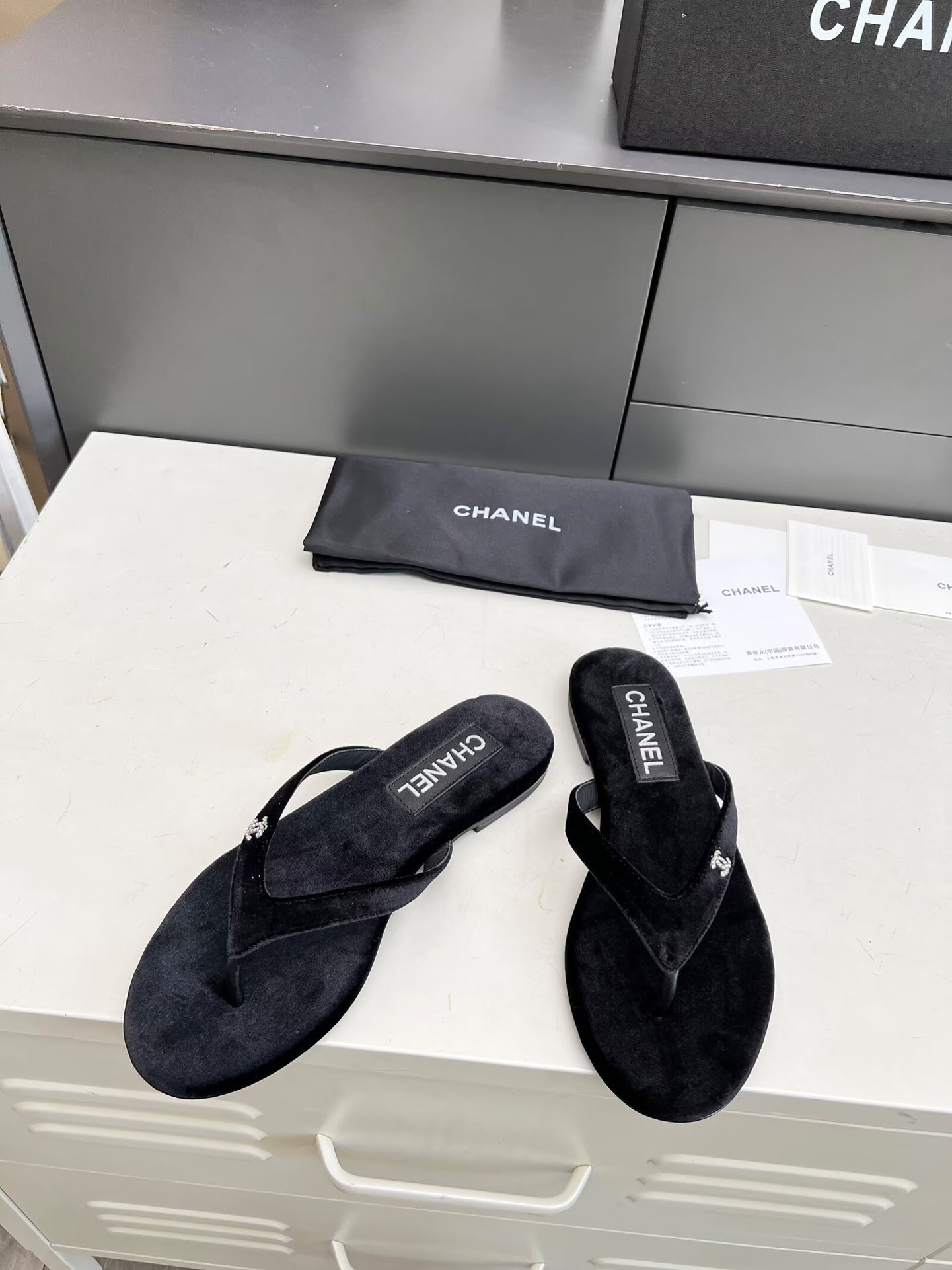 THONG SLIPPERS IN BLACK VELVET
