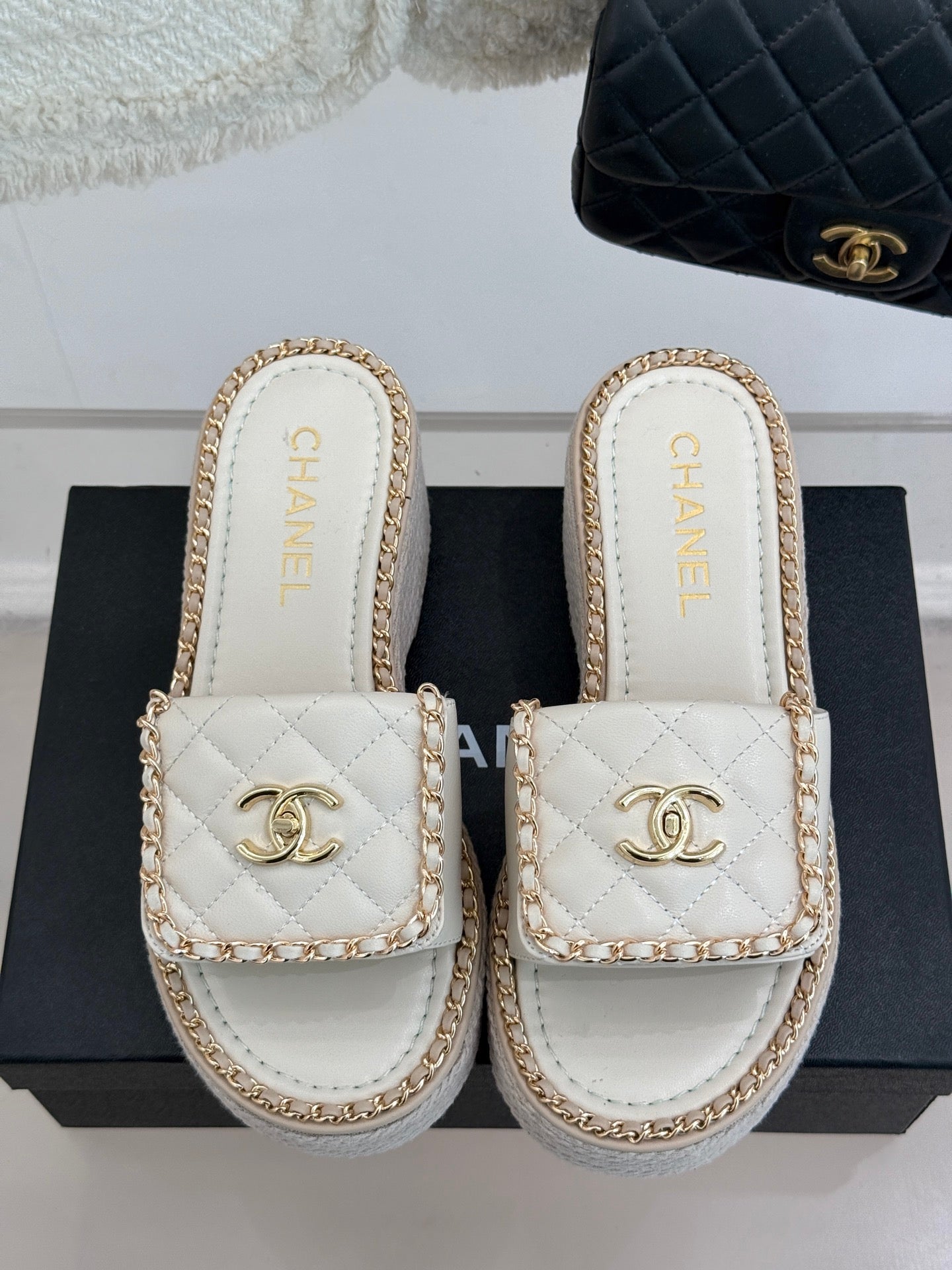 SLIPPERS IN WHITE CALFSKIN QUILTED