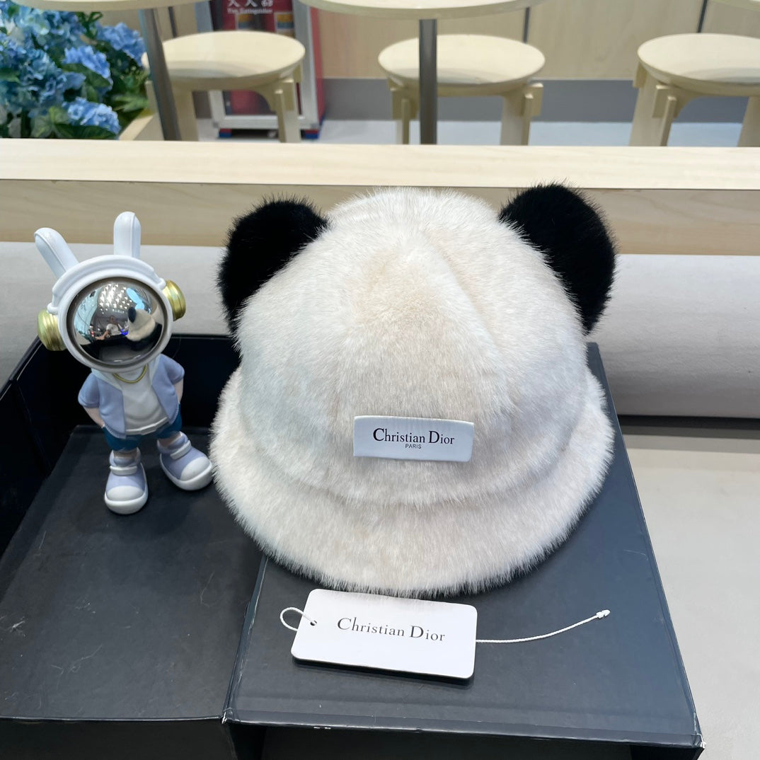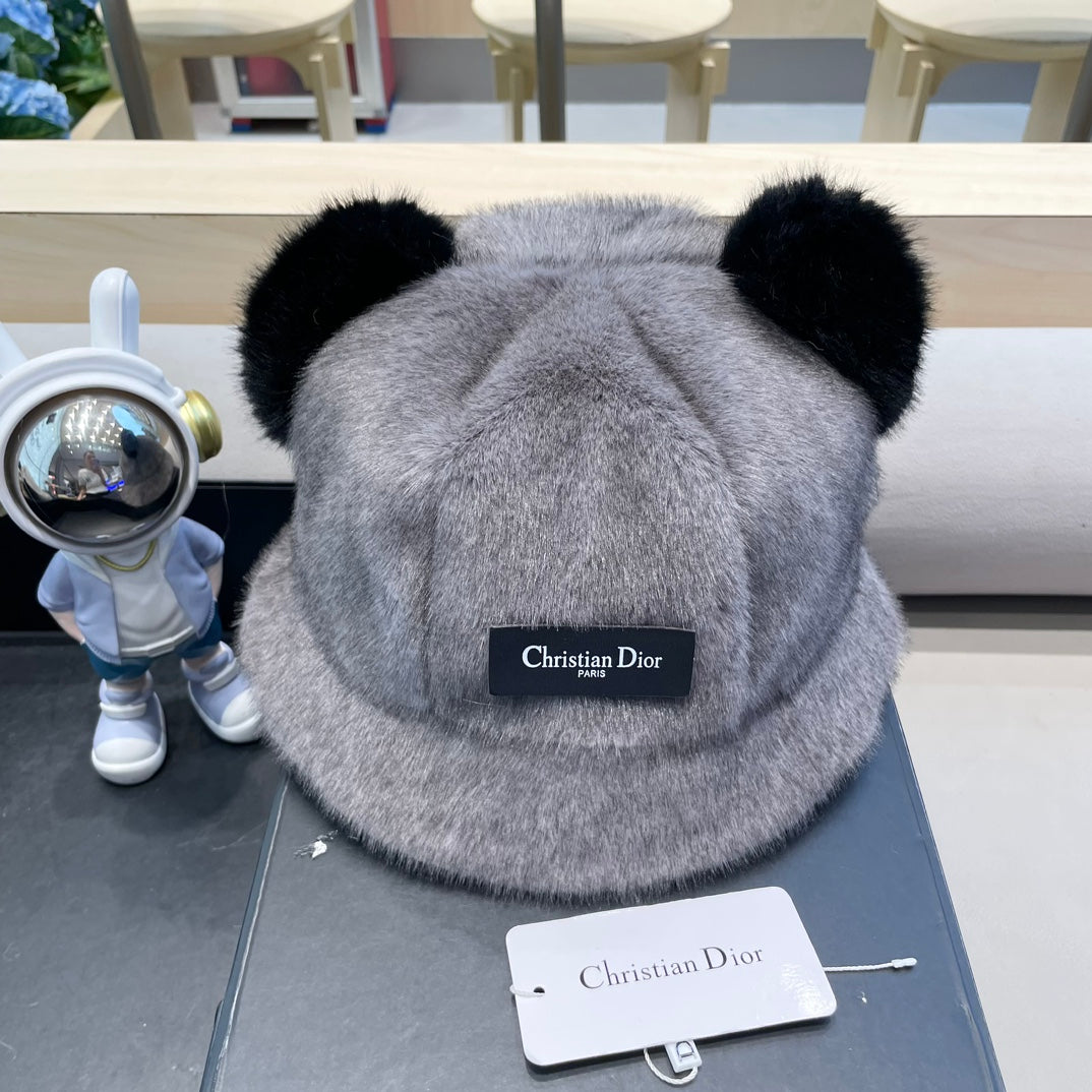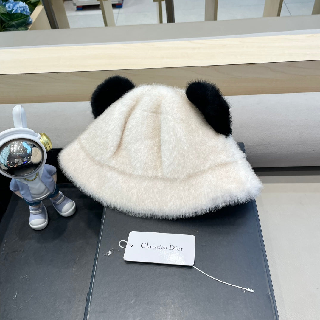 BUCKET HAT WITH CUTE BEAR EARS IN BLACK MINK FUR 422026