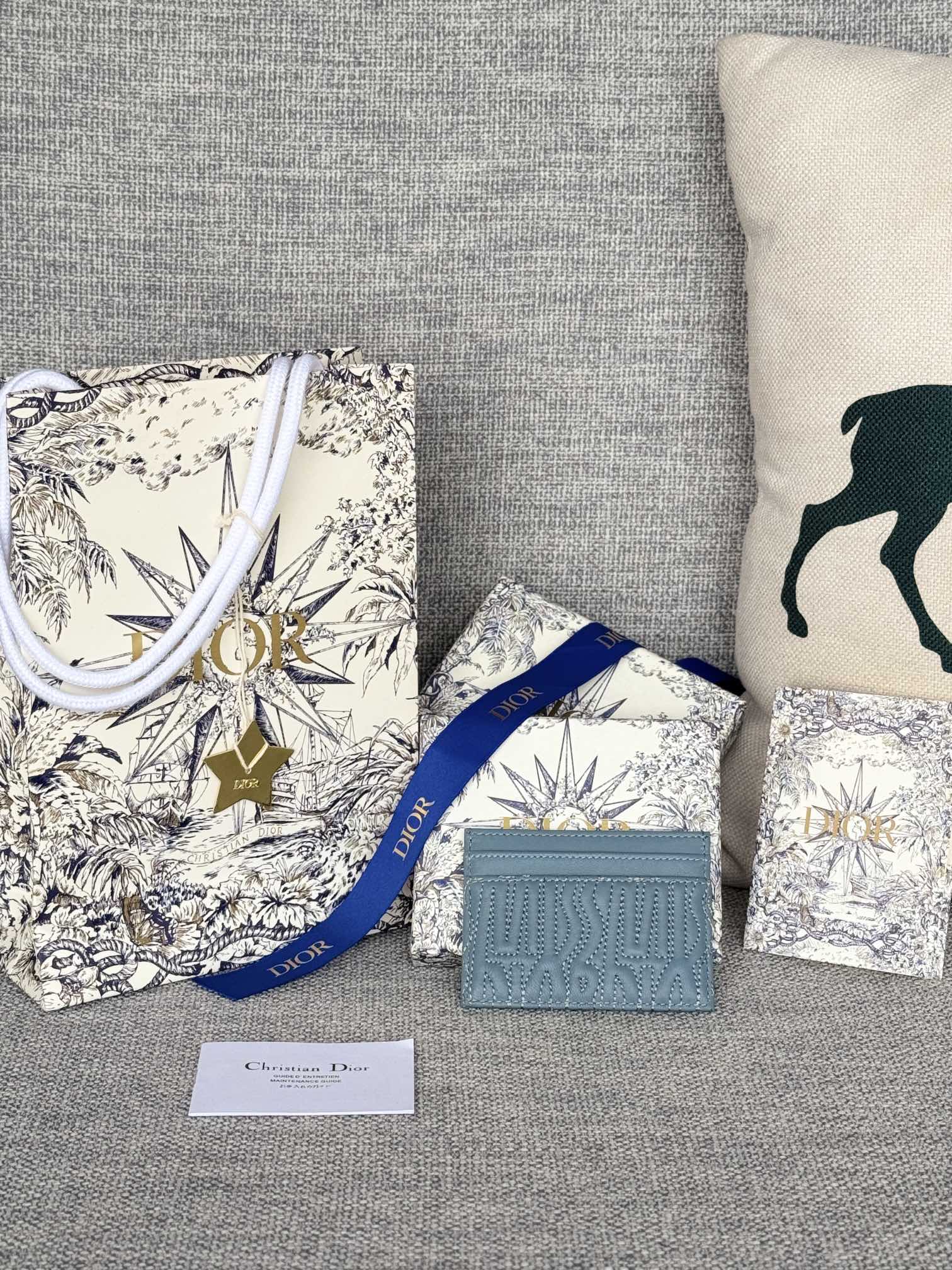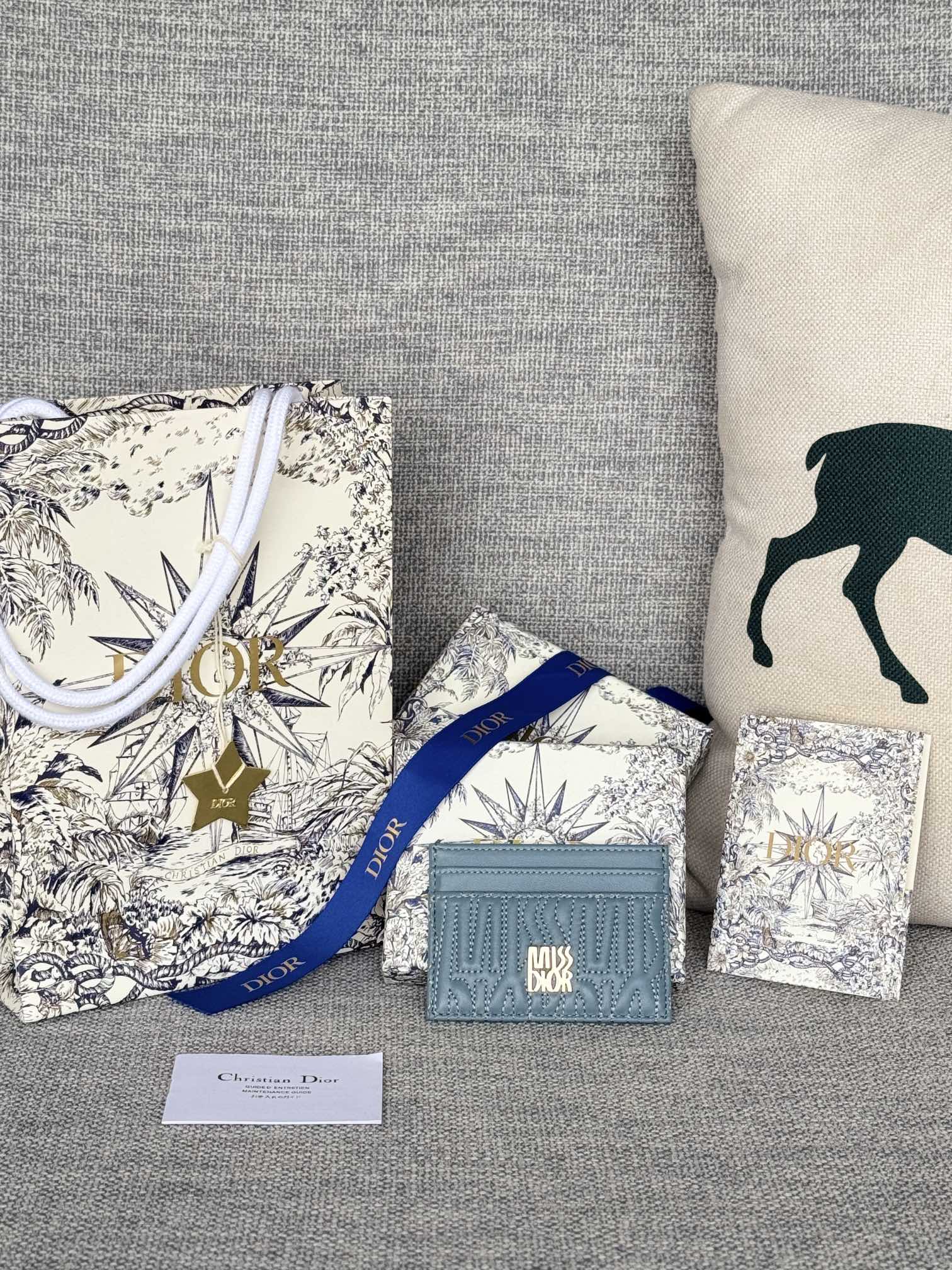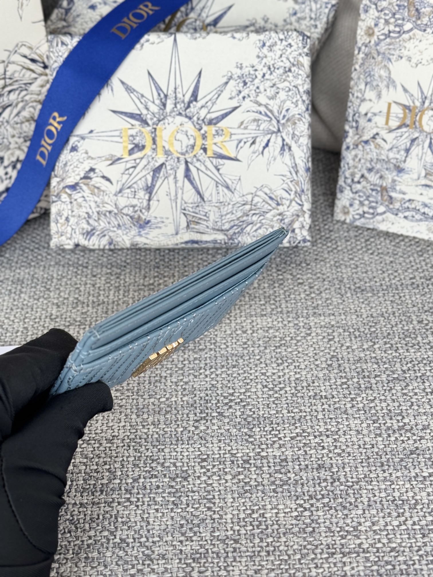 FREESIA CARD HOLDER 10 IN BABY BLUE QUILTED ALLOVER CALFSKIN