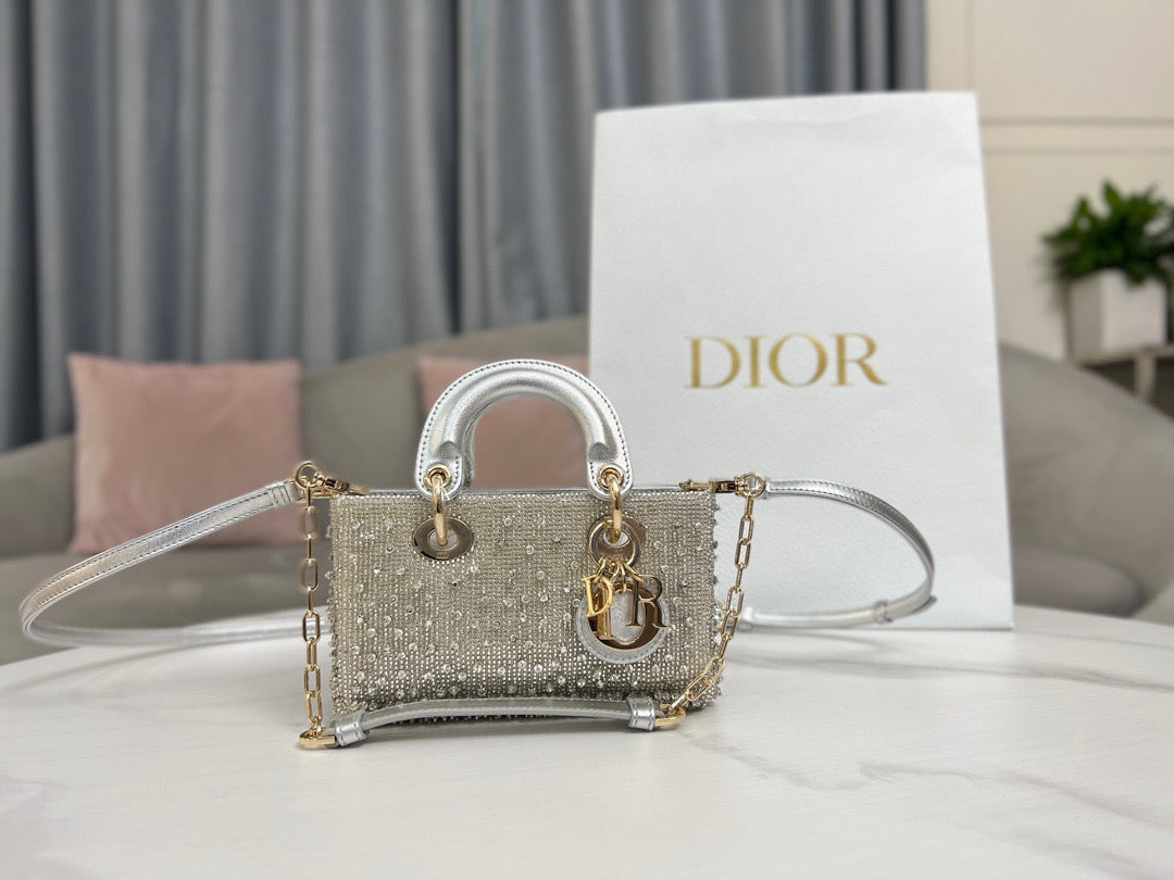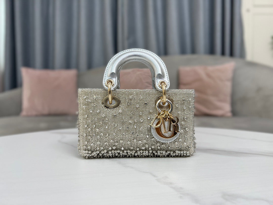 LADY 24 HANDBAG EMBOSSED DIAMOND IN SILVER CALFSKIN