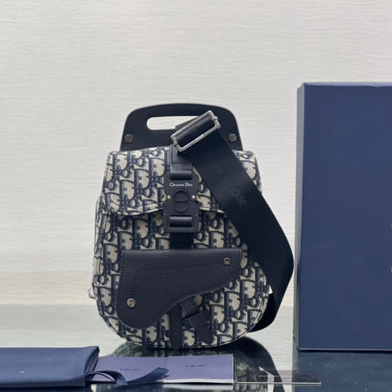 MEDIUM 28 DIORCAMP BAG IN BLUE OBLIQUE EMBROIDERY