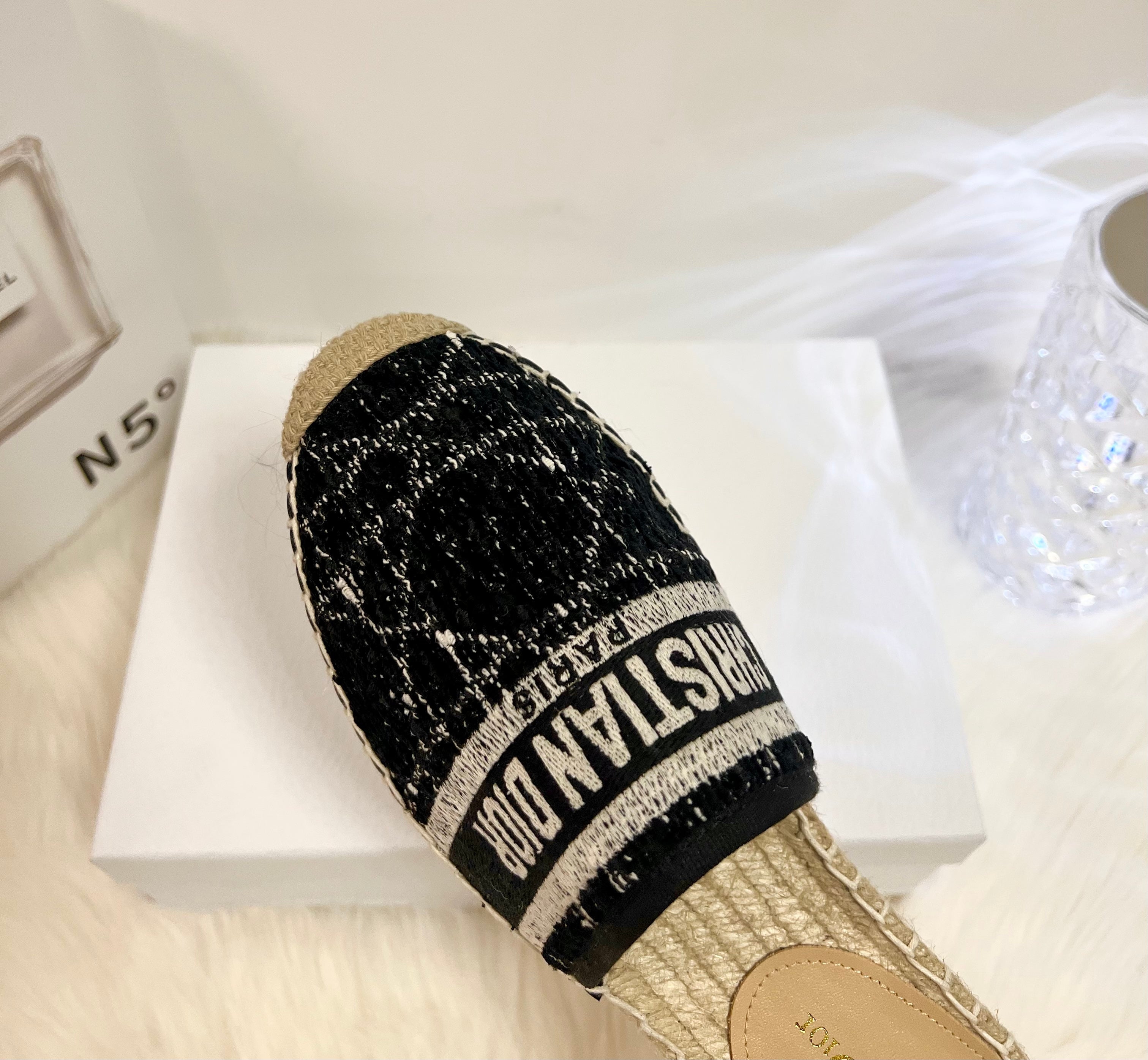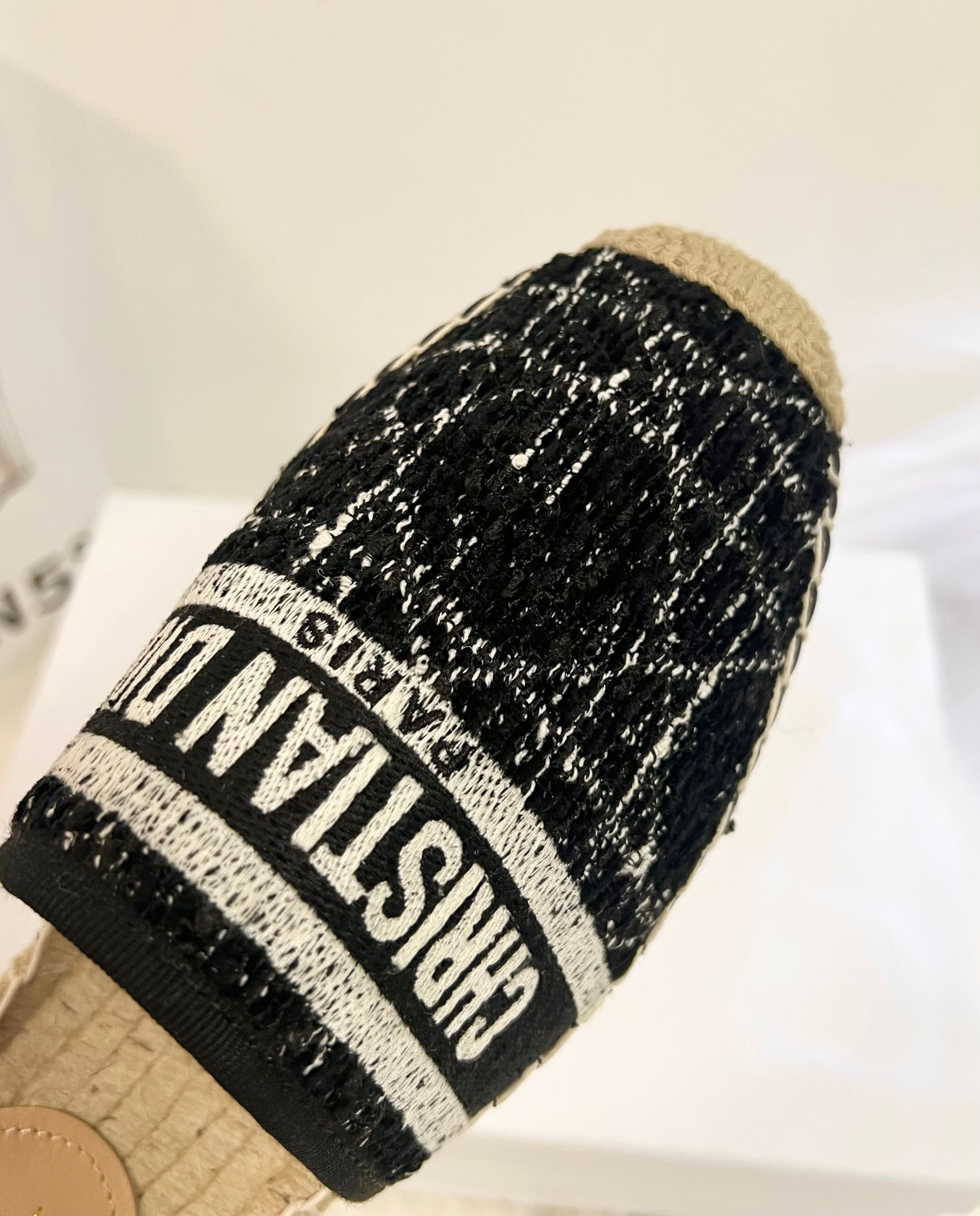 GRANVILLE ESPADRILLE BLACK OBLIQUE EMBROIDERED COTTON MULE