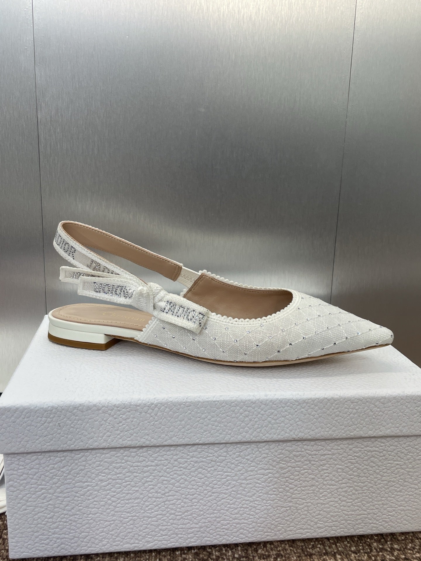J'ADIOR SLINGBACK 25S IN WHITE FABRIC EMBOSSED CRYSTAL
