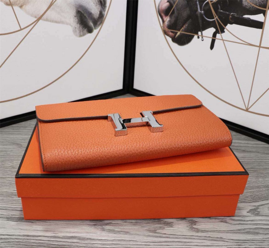 HM CLUTCH CONSTANCE 20.5 ORANGE CALFSKIN SILVER HARDWARE