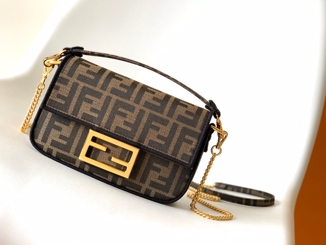 FENDI ROMA 22 CLUTCH BAG IN CHOCOLATE BROWN FF CALFSKIN SILVER HARDWARE WITH GOLDEN LOGO