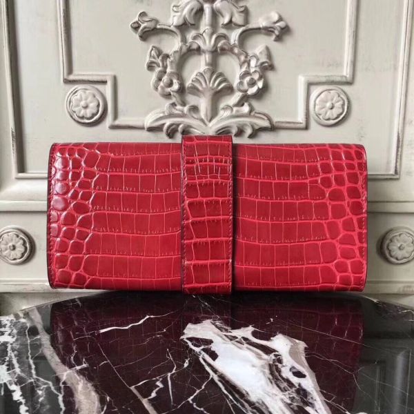 HERM Jige Elan 29 Clutch In Dark Red Crocodile Leather