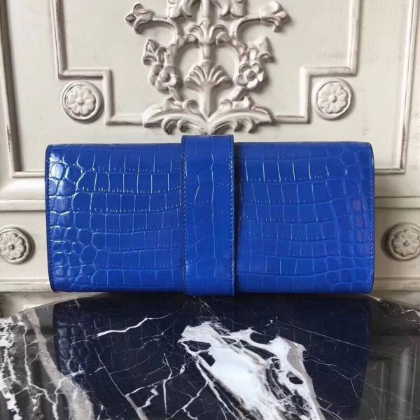 HERM Medor Clutch Bag In Blue Crocodile Leather