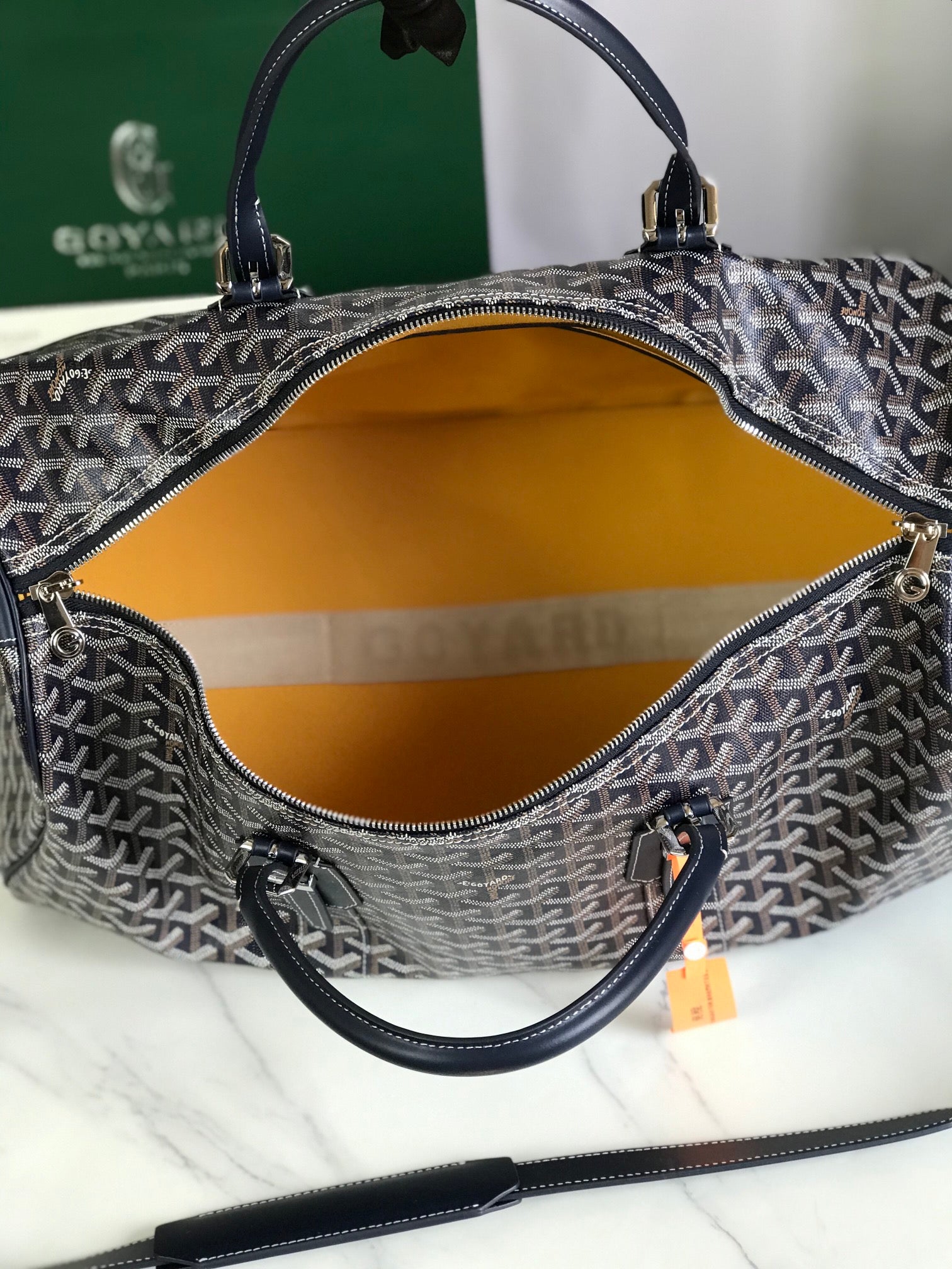 BOSTON 50 BAG IN NAVY BLUE GOYARDINE CANVAS AND CALFSKIN TRIM