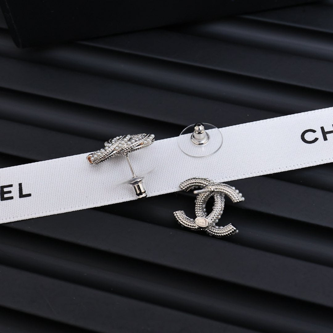 TWISTED ROPE STUD EARRINGS IN METAL WITH WHITE PEARLS