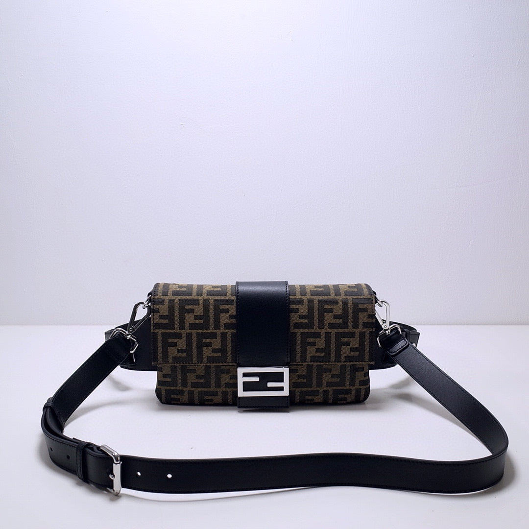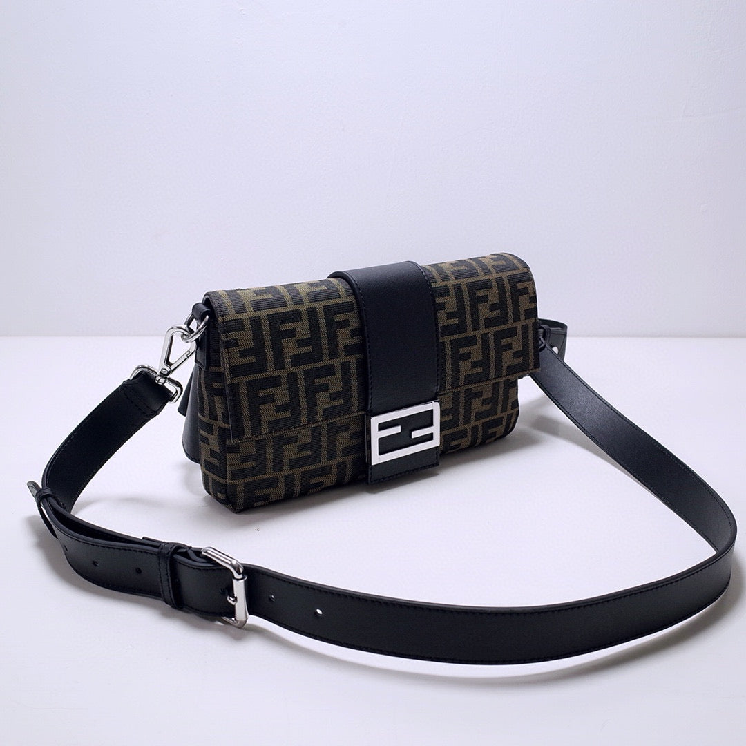 Fend Baguette 27 Shoulder Bag Brown FF Jacquard Fabric Bag Shw