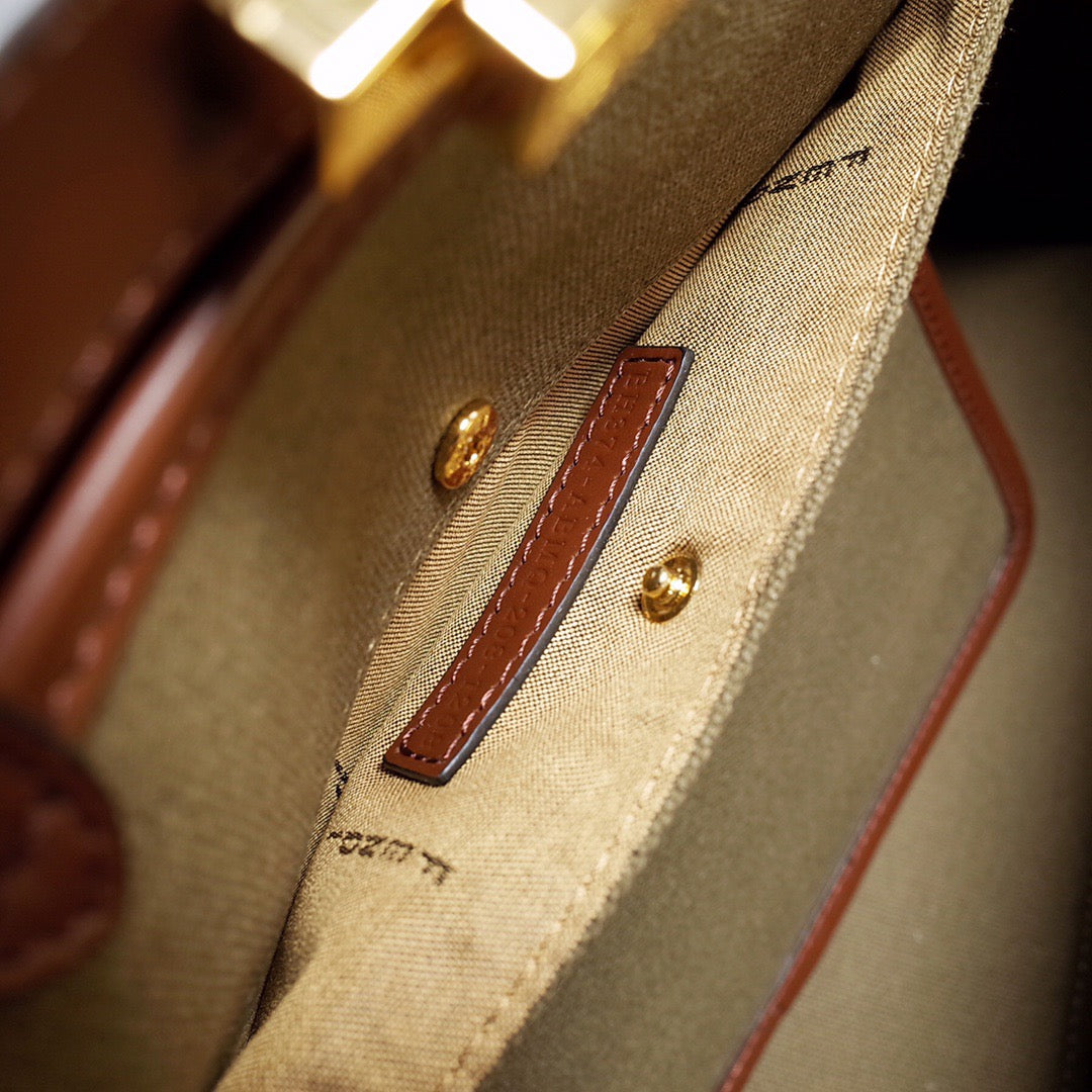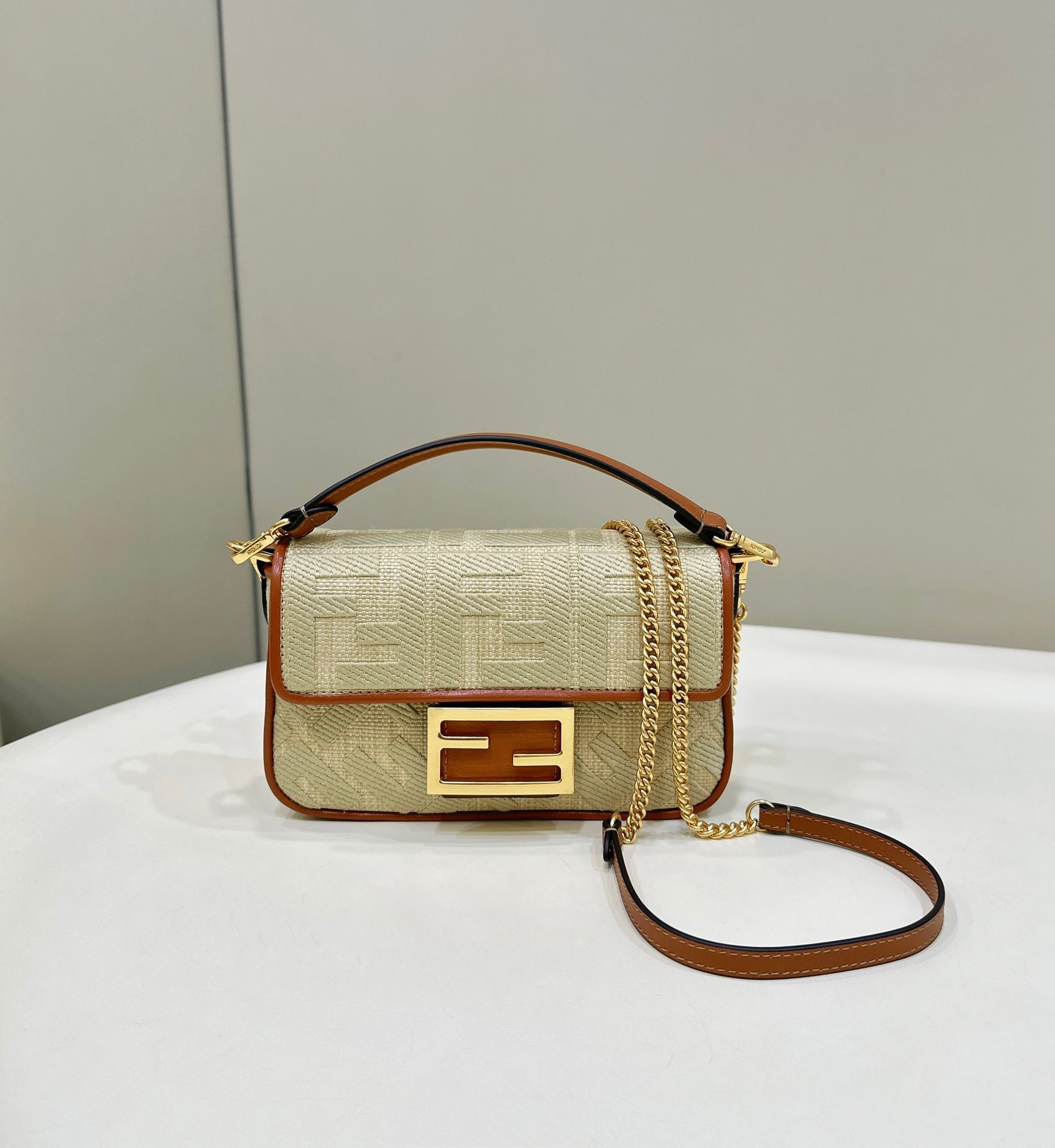 MINI ROLL BAG 15 PEANUT BROWN MIX WHITE FF JACQUARD FABRIC