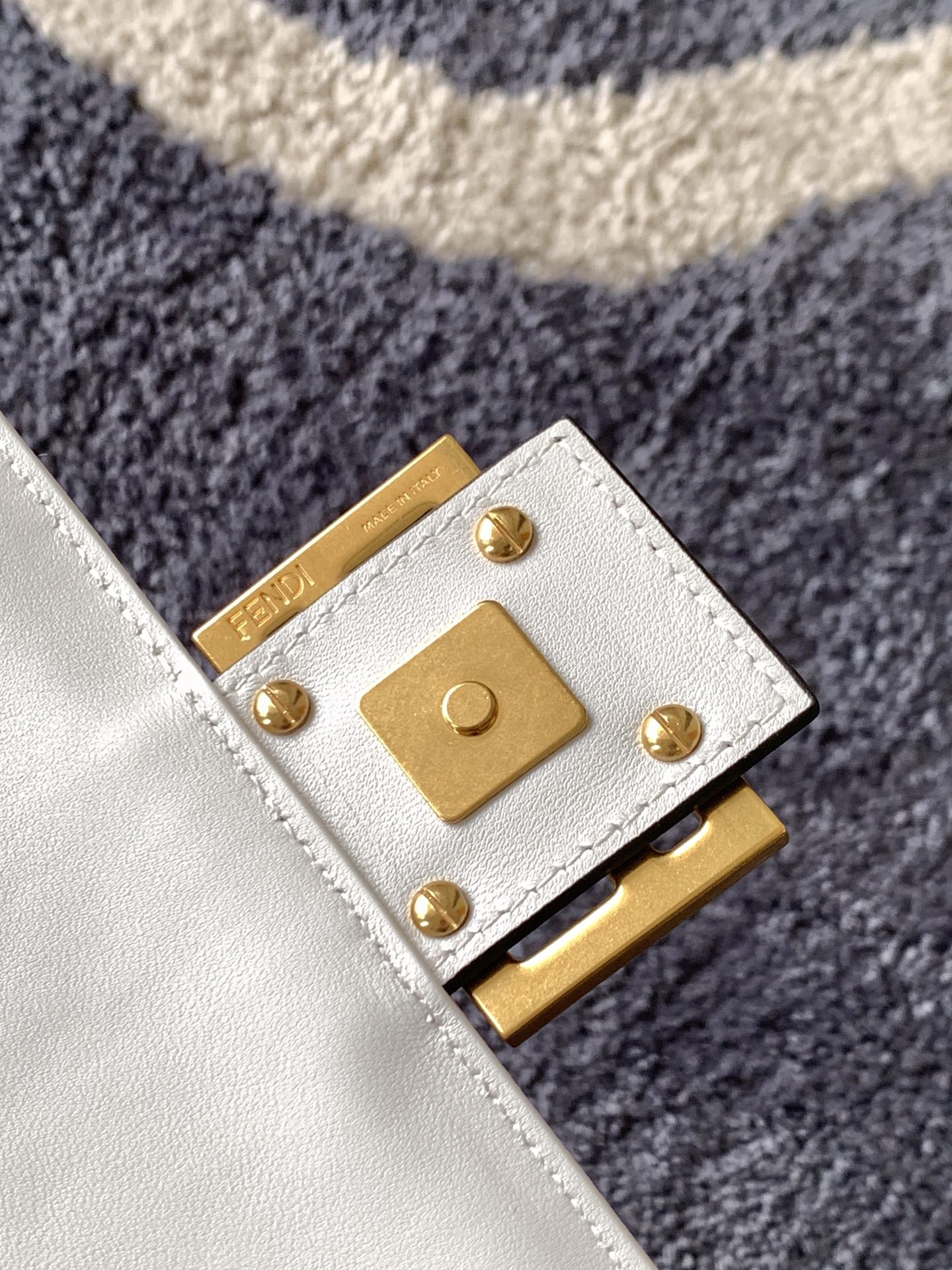 PEEKABOO ISEEU 34 IN WHITE PERFORATED CALFSKIN GOLD HARDWARE