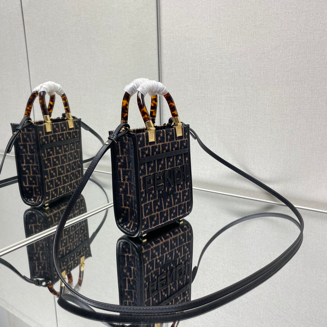 MINI ROLL BAG 15 BLACK MIX BROWN FF JACQUARD FABRIC