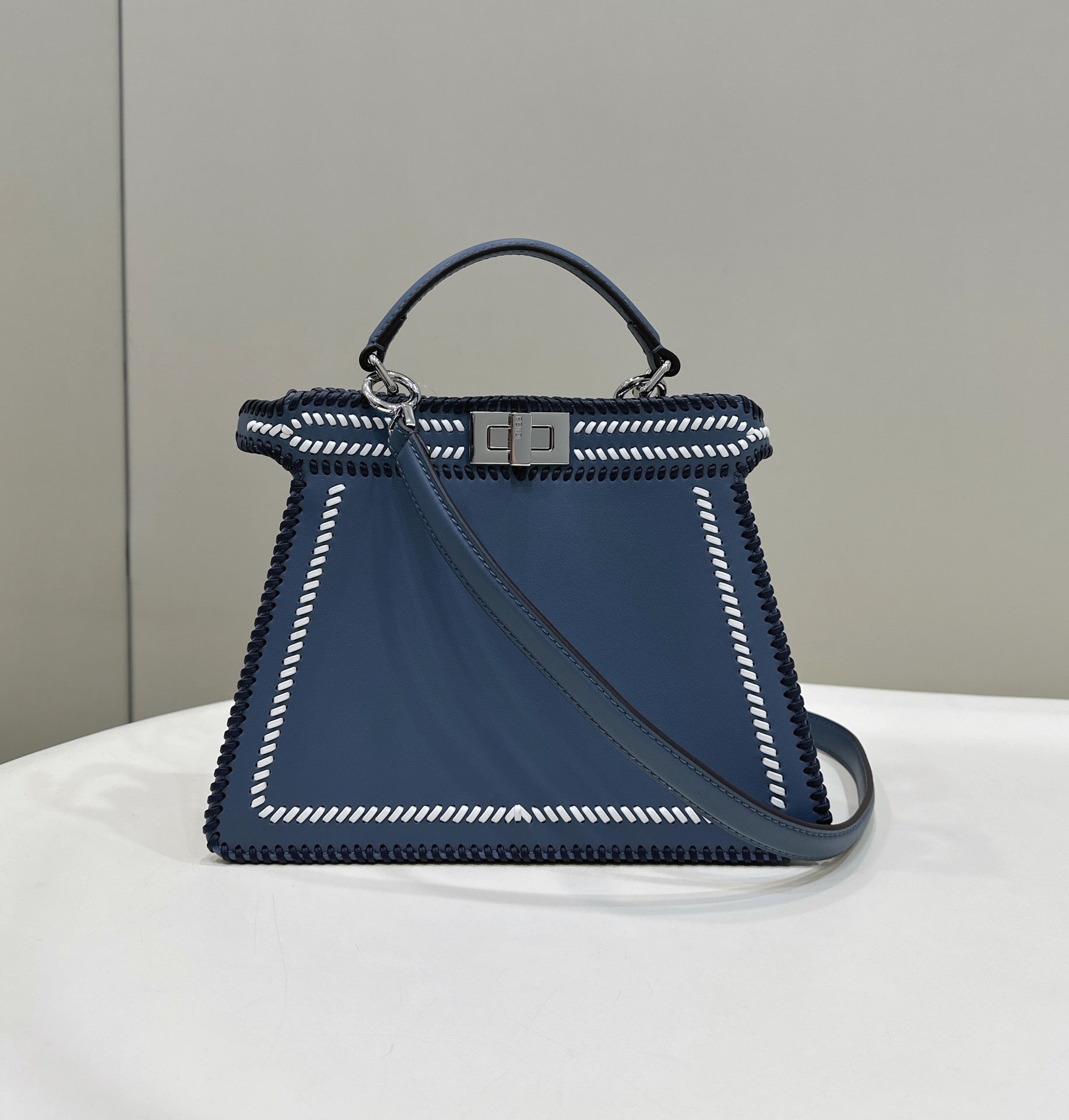 MINI ROLL BAG 15 MIDNIGHT BLUE MIX WHITE FF JACQUARD FABRIC