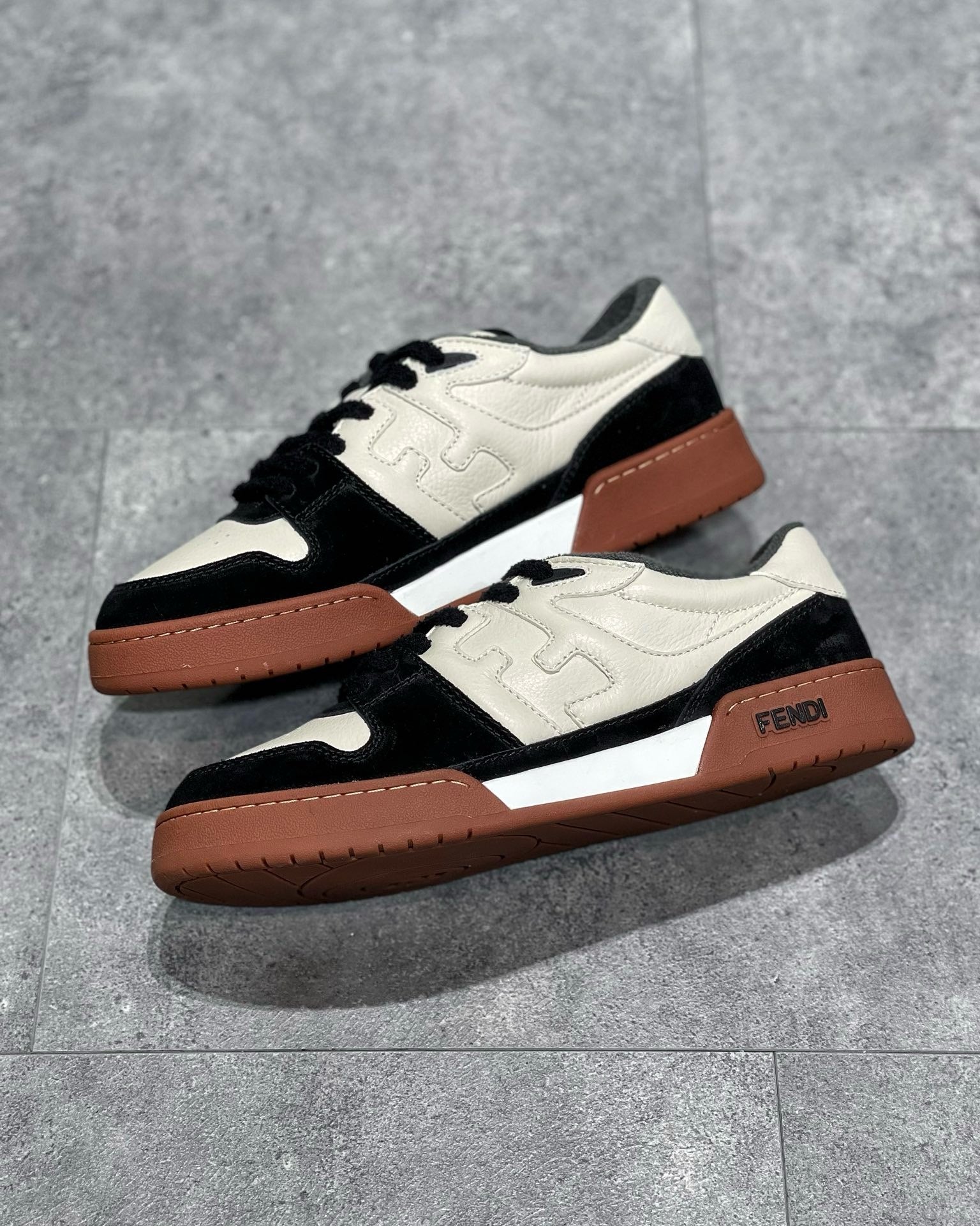 FENDI MATCH TRAINER IN BLACK MIX WHITE CALFSKIN AND HIGH-DENSIITY FABRIC