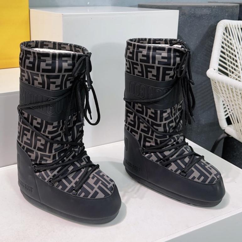 FF MOTIF MOON BOOTS IN WALNUT BROWN MONOGRAM POLYESTER AND RUBBER