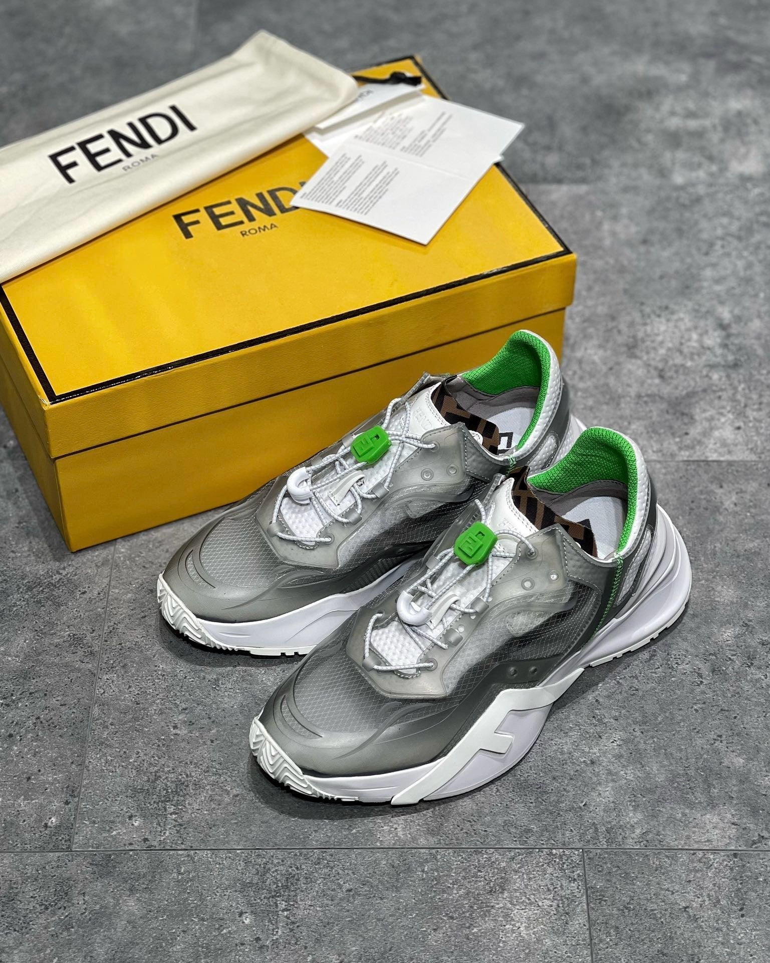 FENDI TAG SNEAKER IN NEON YELLOW MIX GREY MESH AND RUBBER