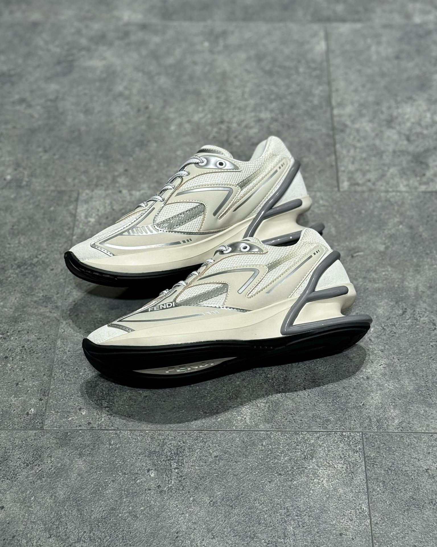 FENDI TAG SNEAKER IN LIGHT GREY MESH AND RUBBER