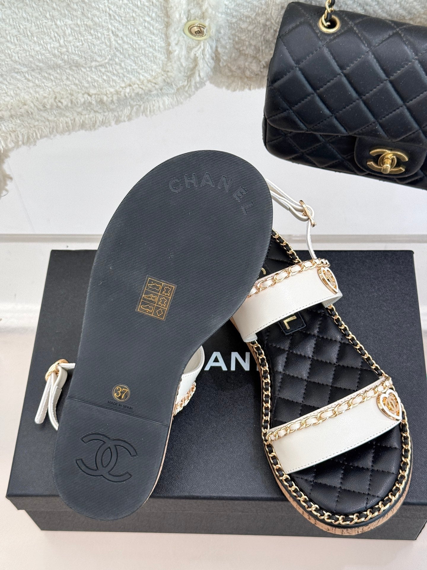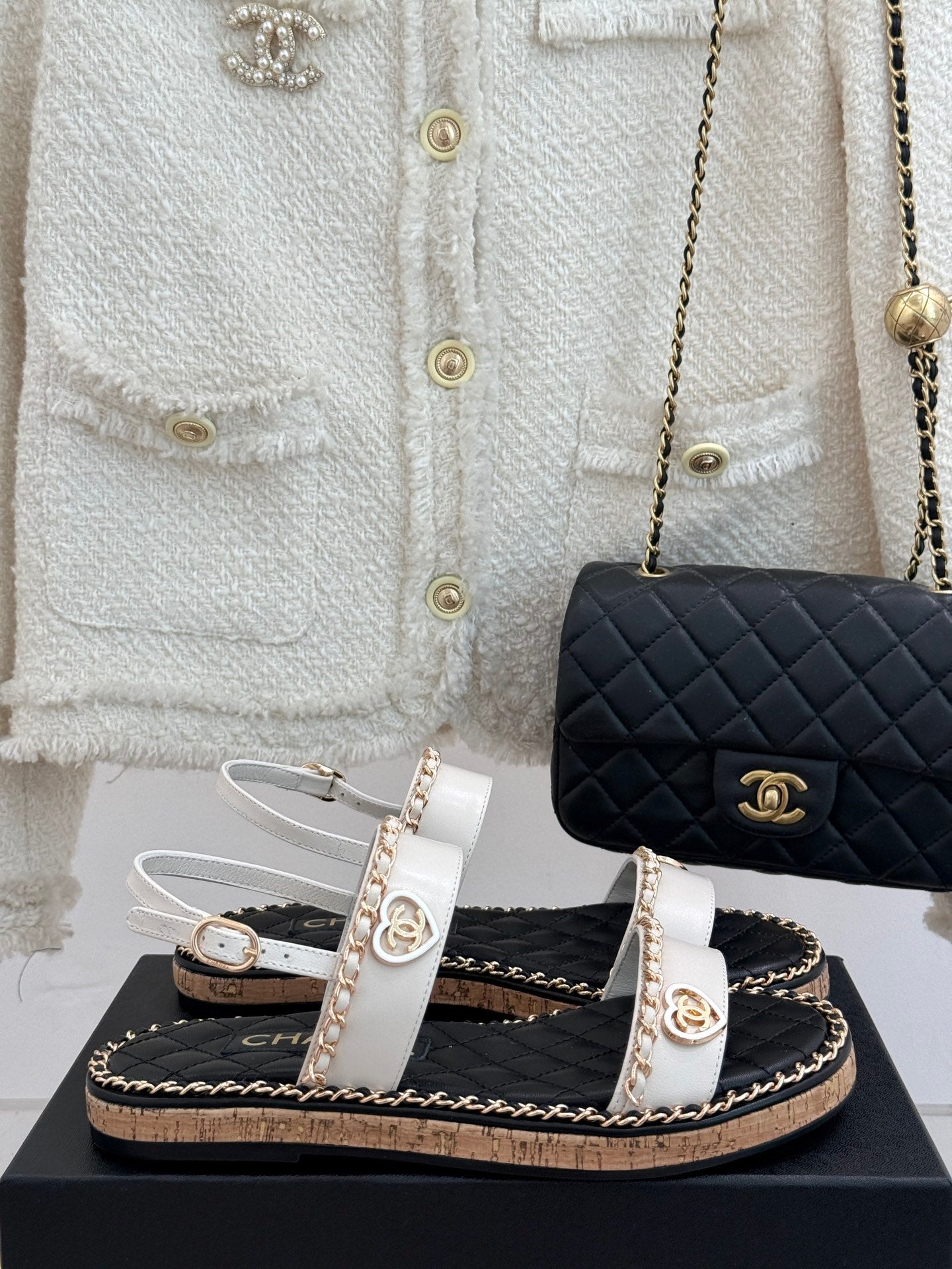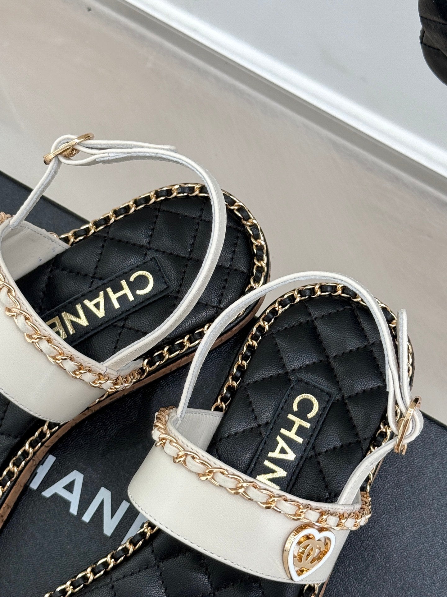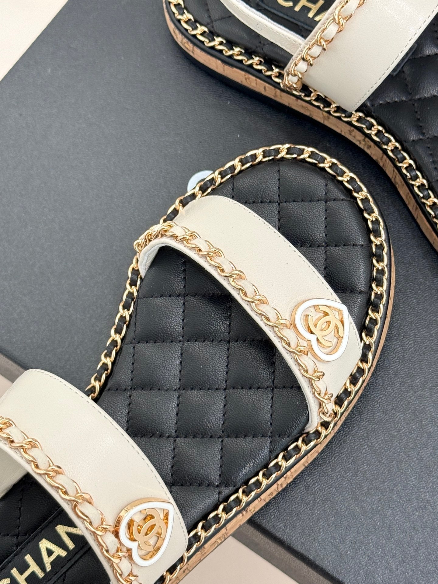 FLAT CHAIN HEART SANDAL IN WHITE LAMBSKIN