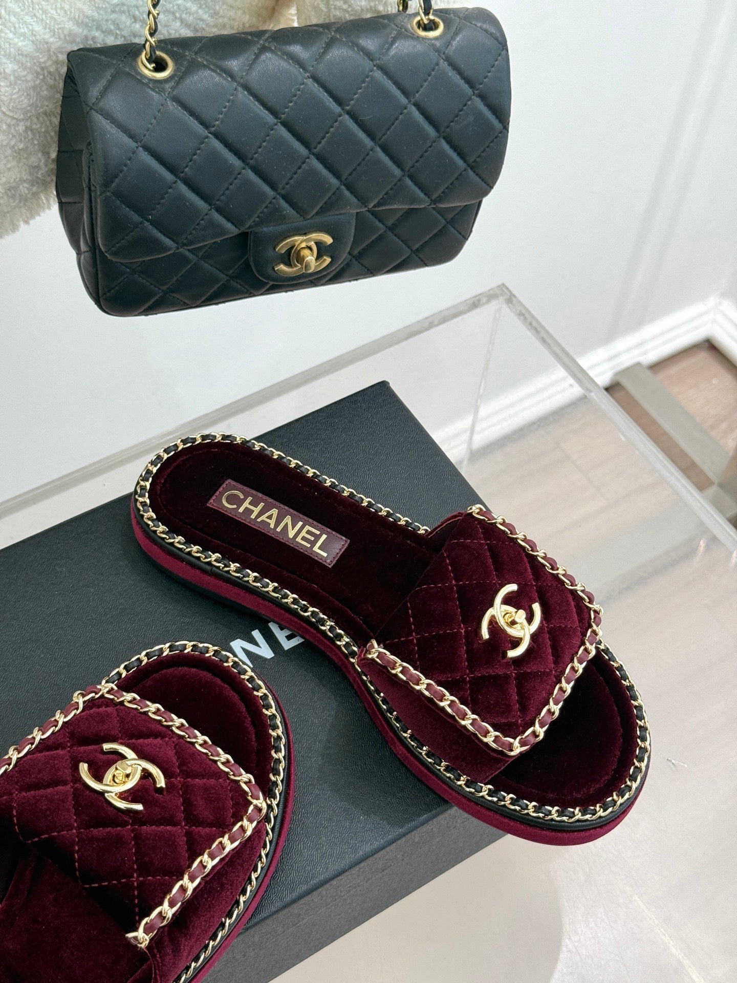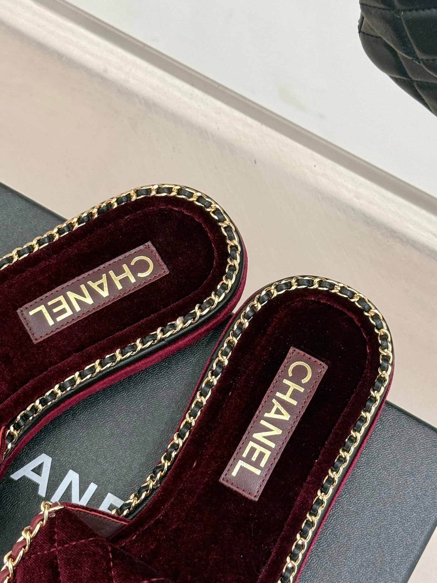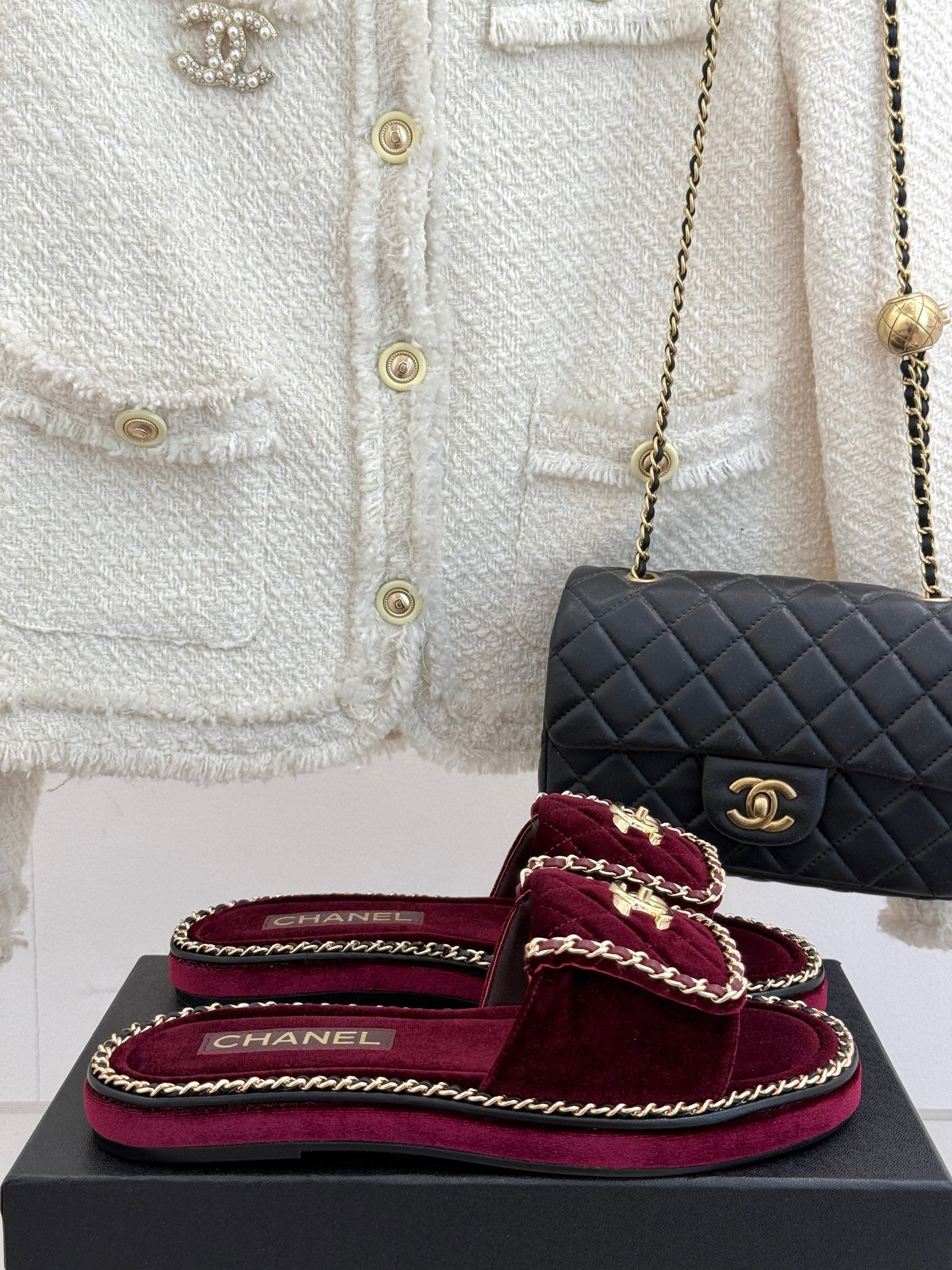 • FLAT CHAIN HEART SLIPPER IN PLUM PURPLE VELVET