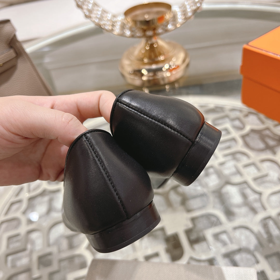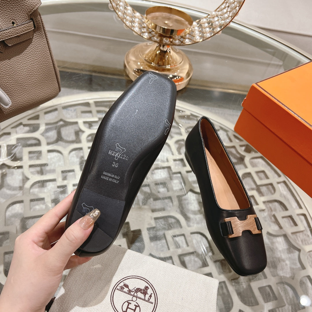 H - BUCKLE BALLET BLACK CALFSKIN