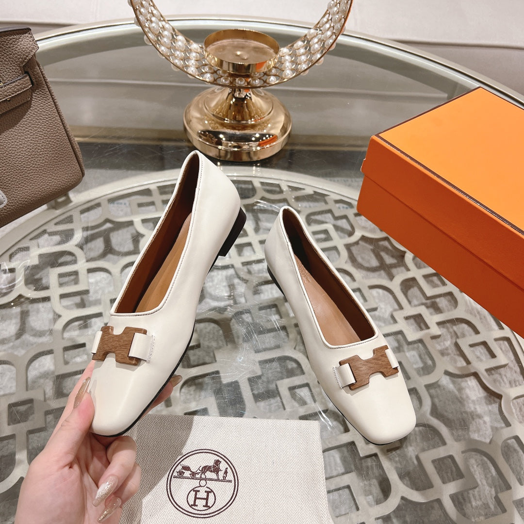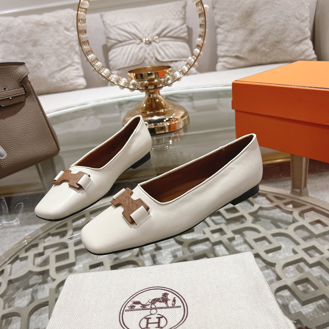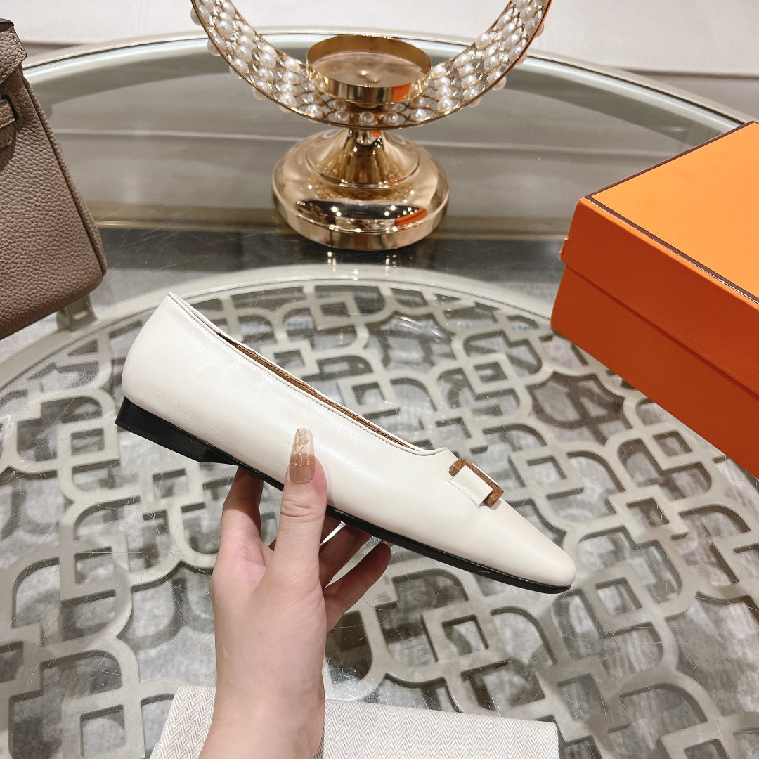 H - BUCKLE BALLET WHITE CALFSKIN