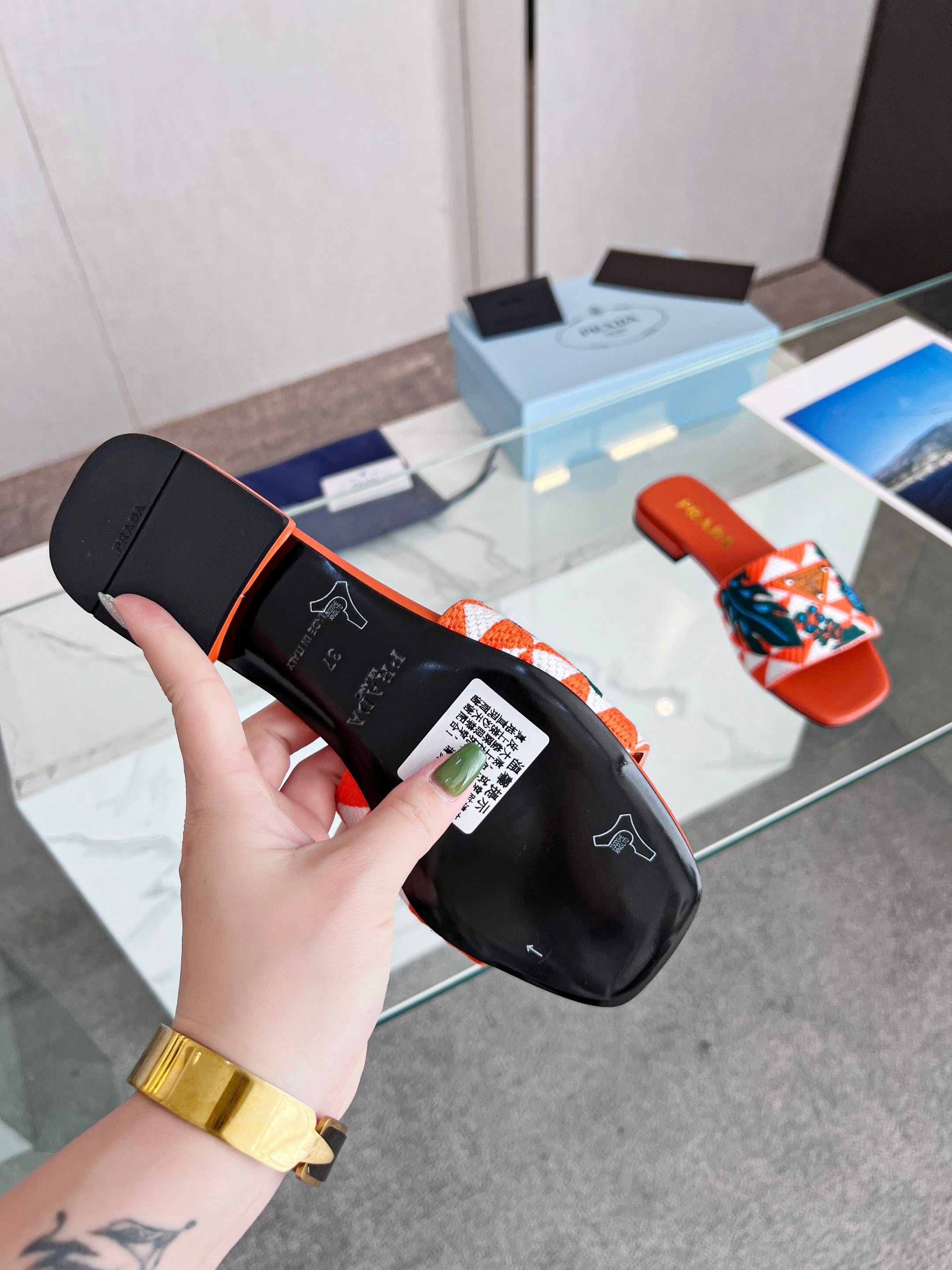 PRA EMBROIDERED SLIDES FLAT ORANGE FABRIC