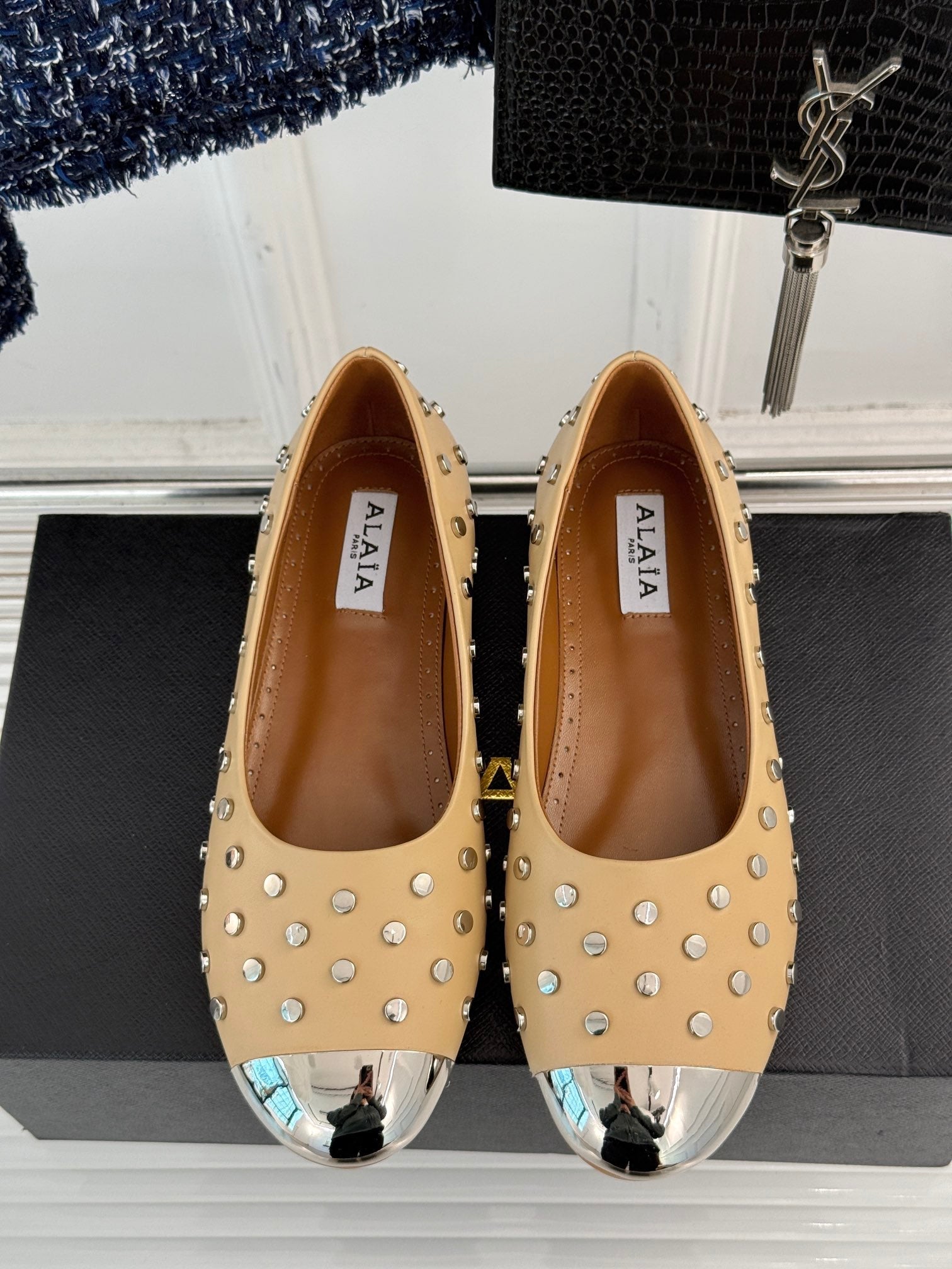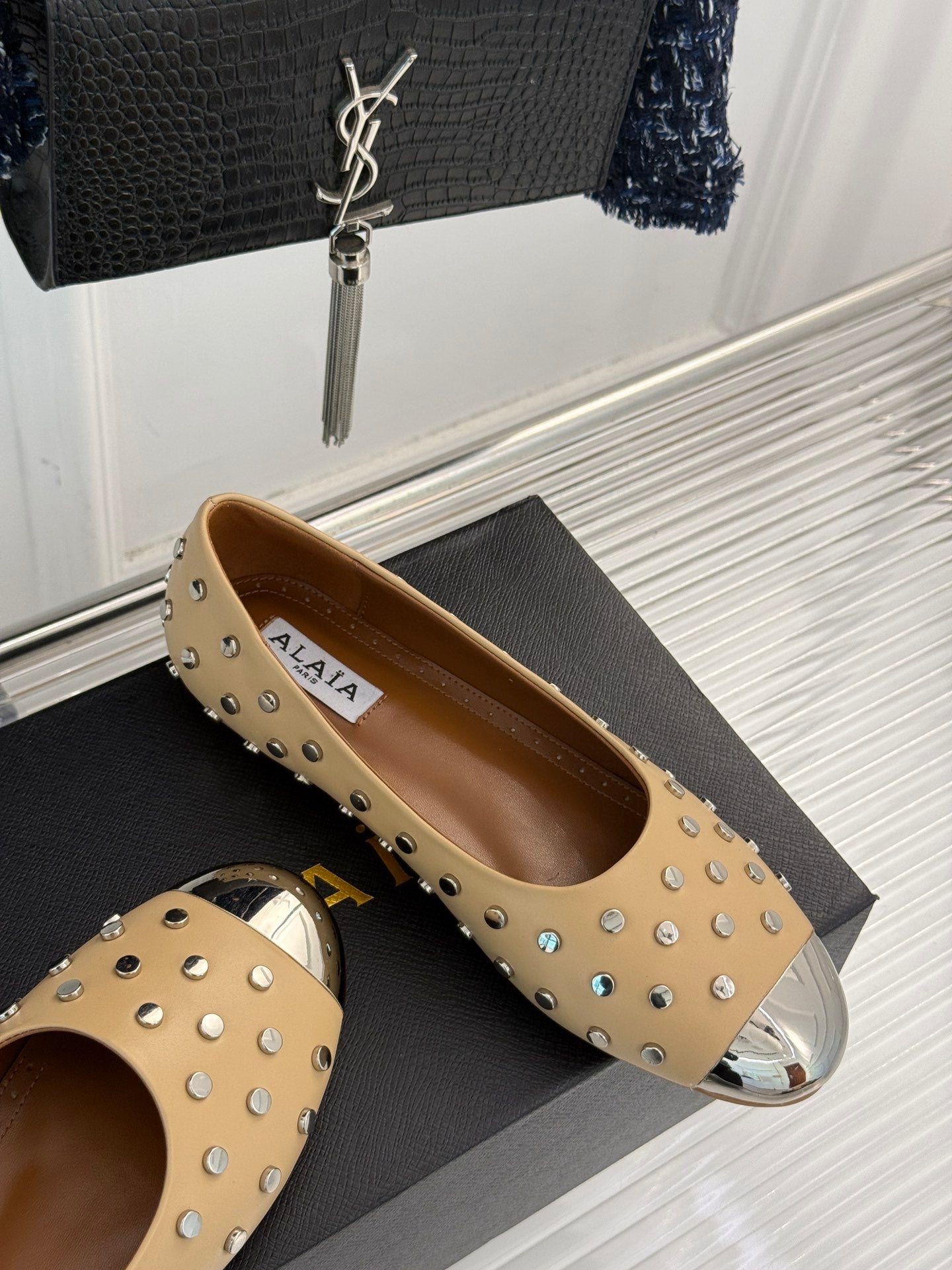 • Material: Calfskin with metal studded toes