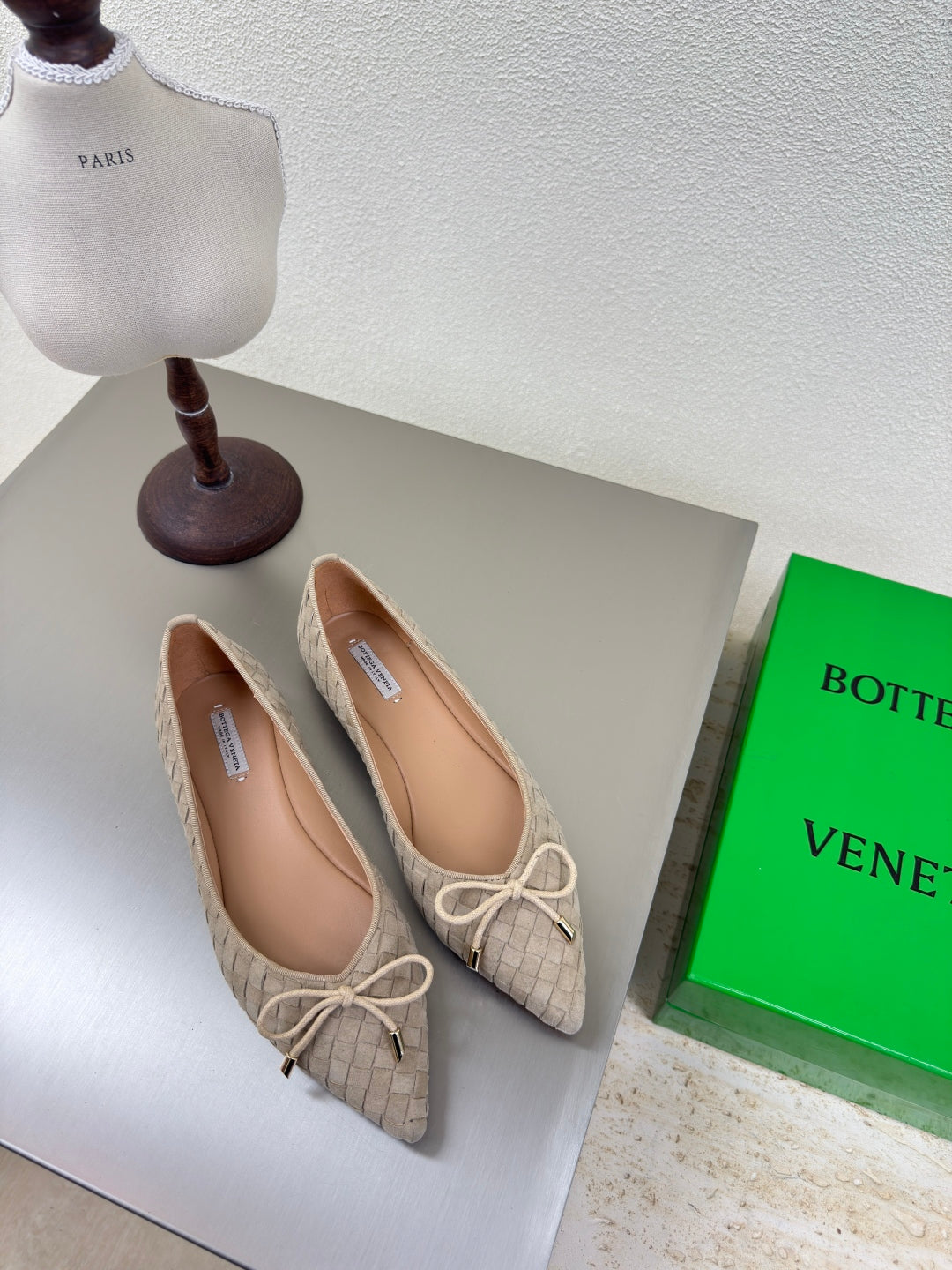 BALLET FLAT IN LIGHT BROWN INTRECCIATO SUEDE WITH BOW