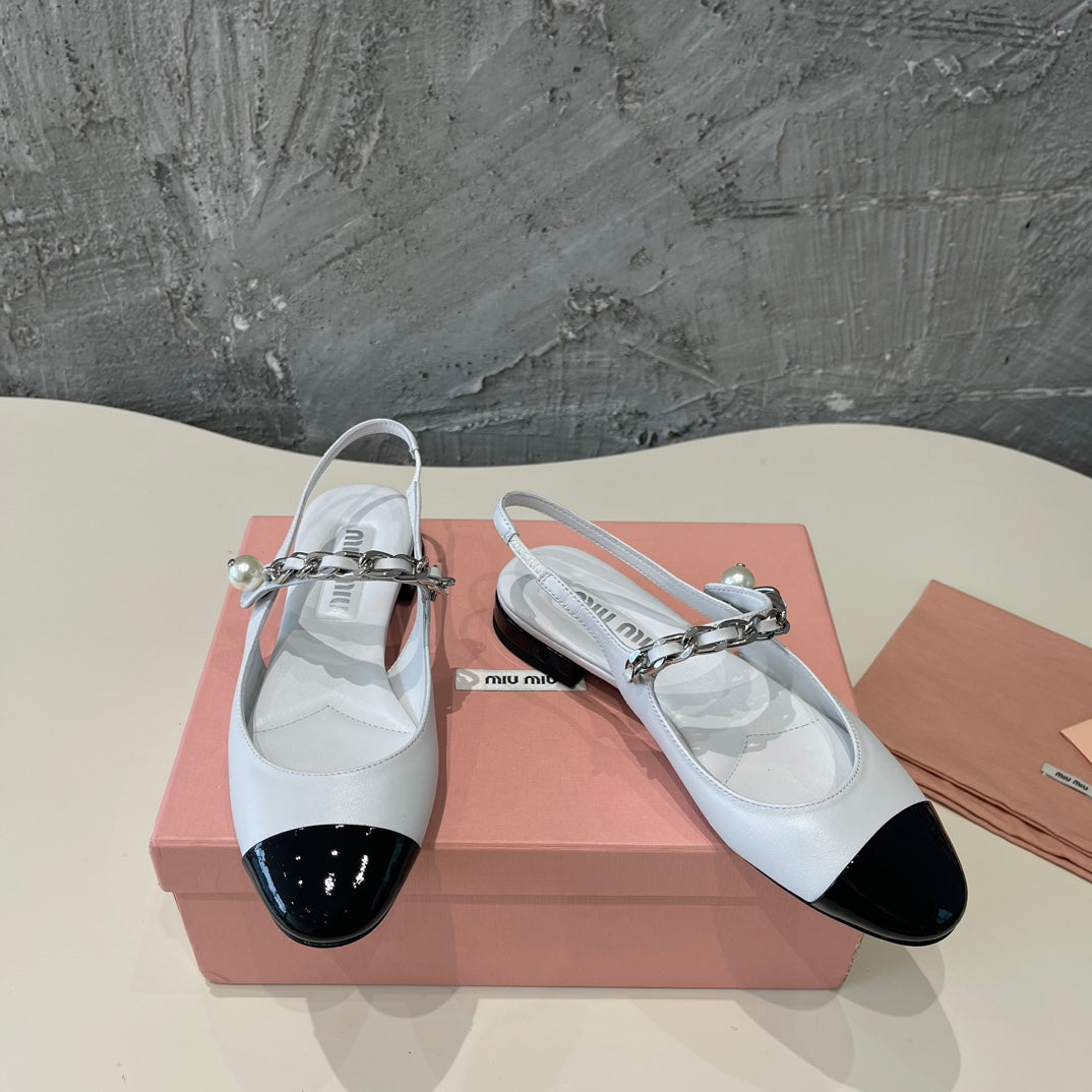SLINGBACKS 80 MM IN WHITE CALFSKIN AND BLACK CANVAS