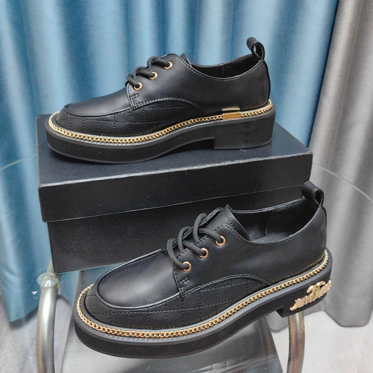 UNIQUE THICK-SOLED OXFORD SHOES BLACK CALFSKIN