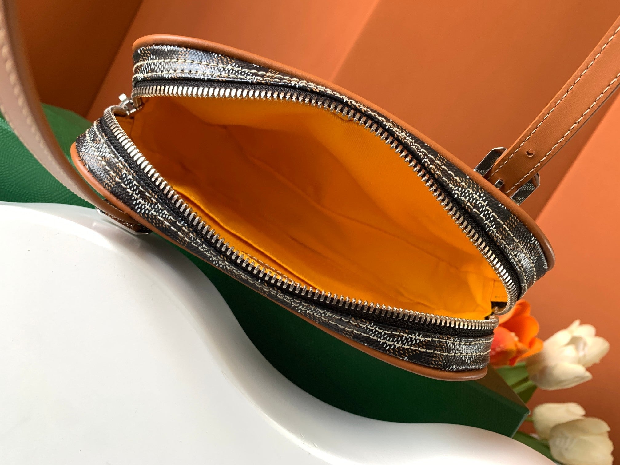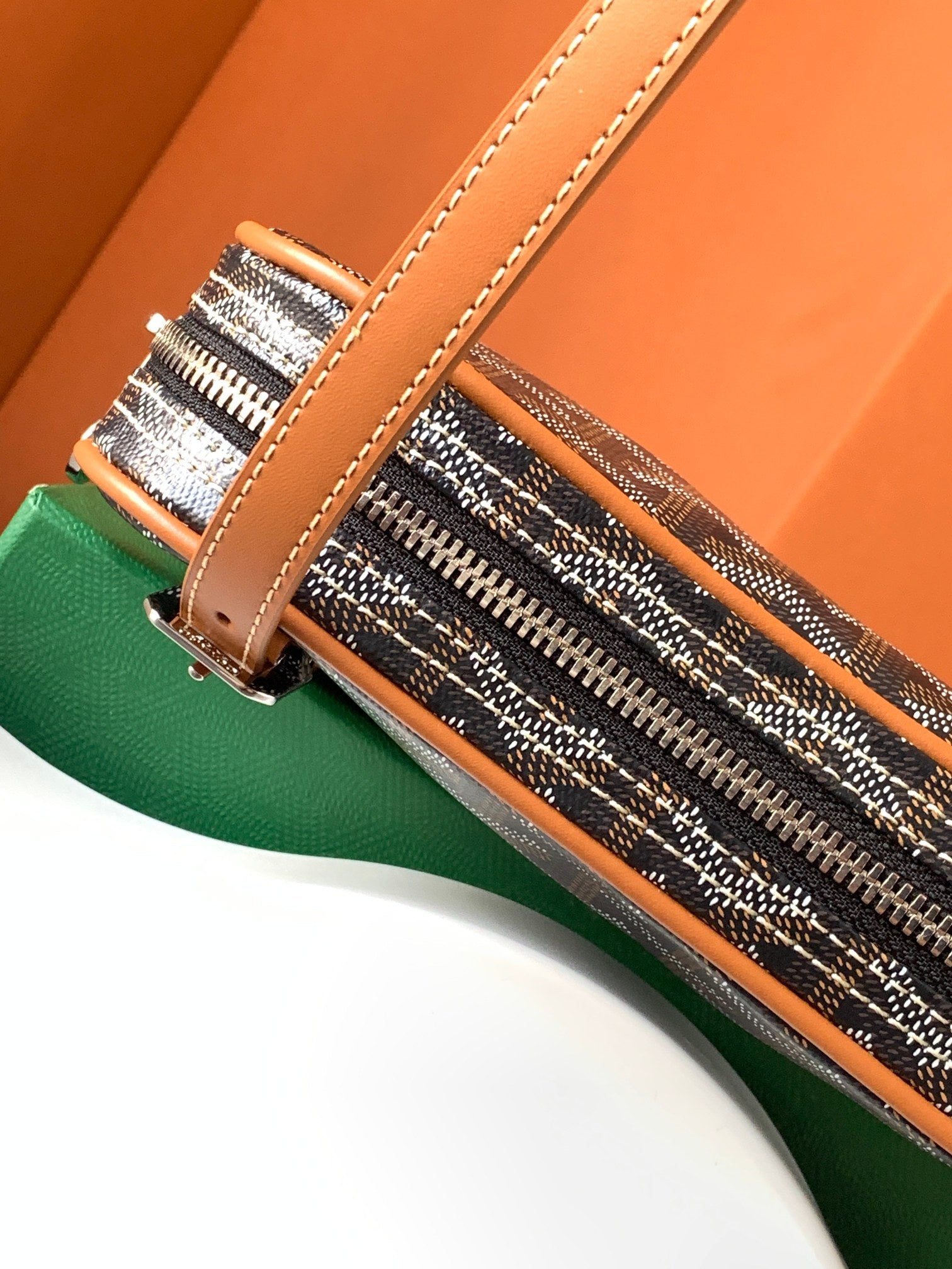 - Material: Goyardine canvas & chevroches calfskin