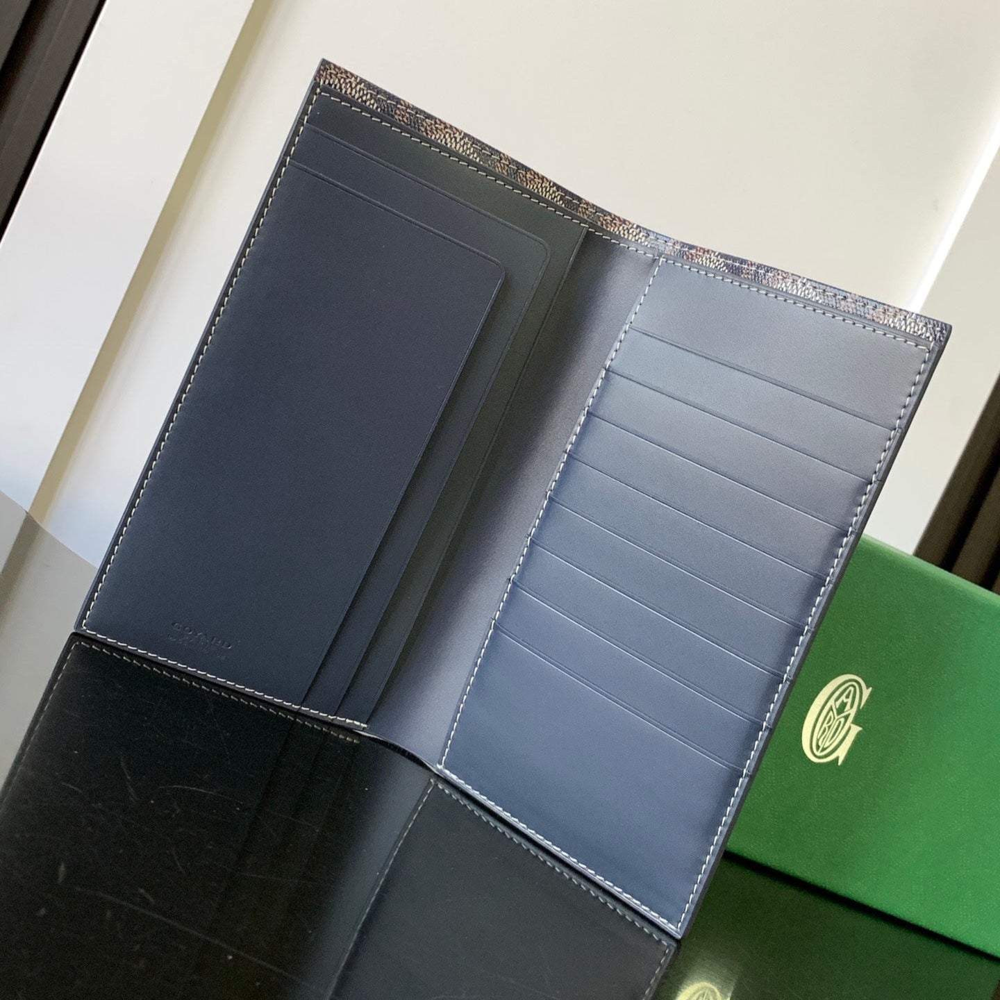 - RICHELIEU CHECKBOOK WALLET 19 IN NAVY BLUE GOYARDINE CANVAS AND CALFSKIN