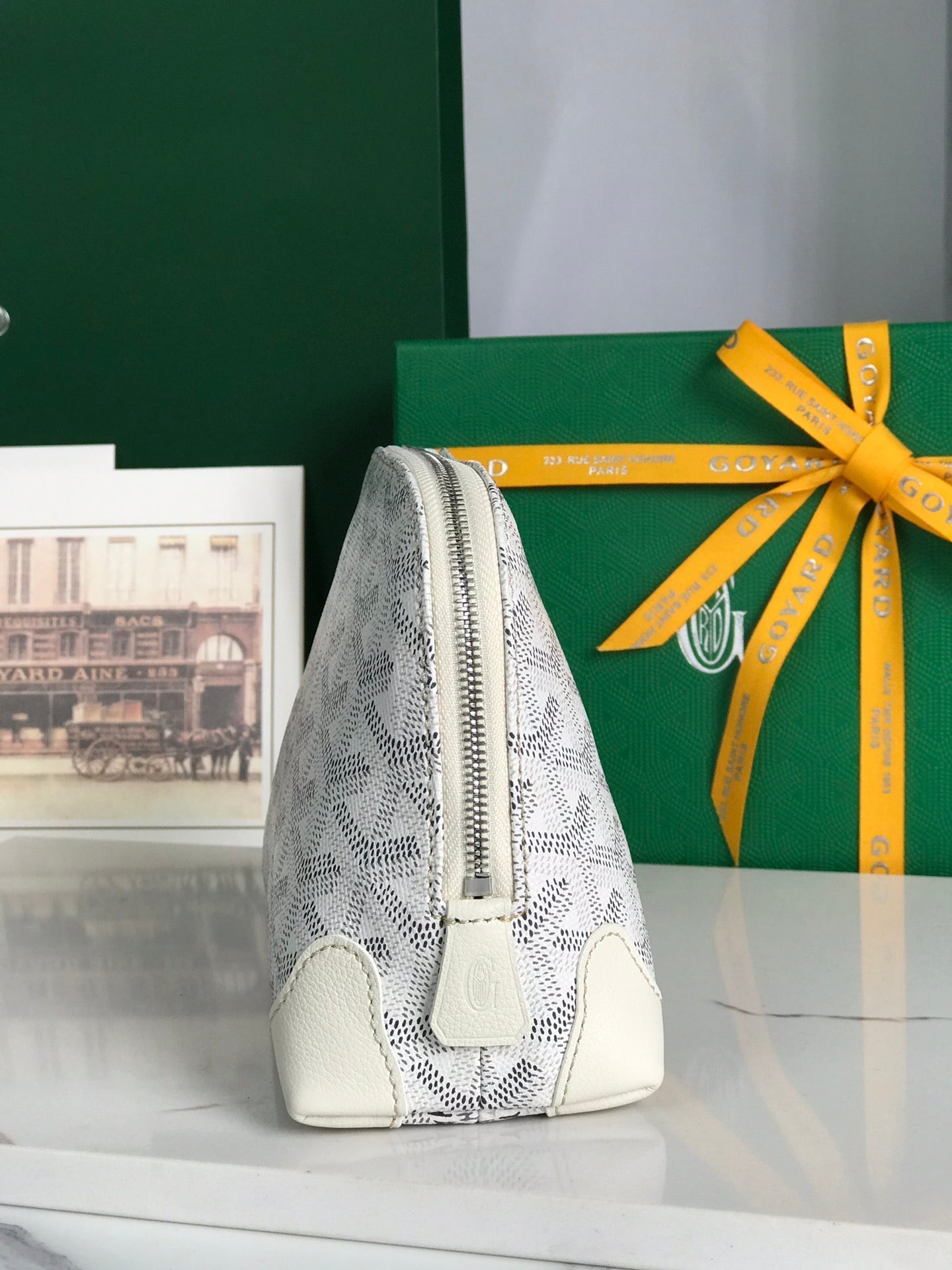 VENDÔME COSMETIC POUCH 17 IN WHITE GOYARDINE CANVAS AND CALFSKIN TRIM